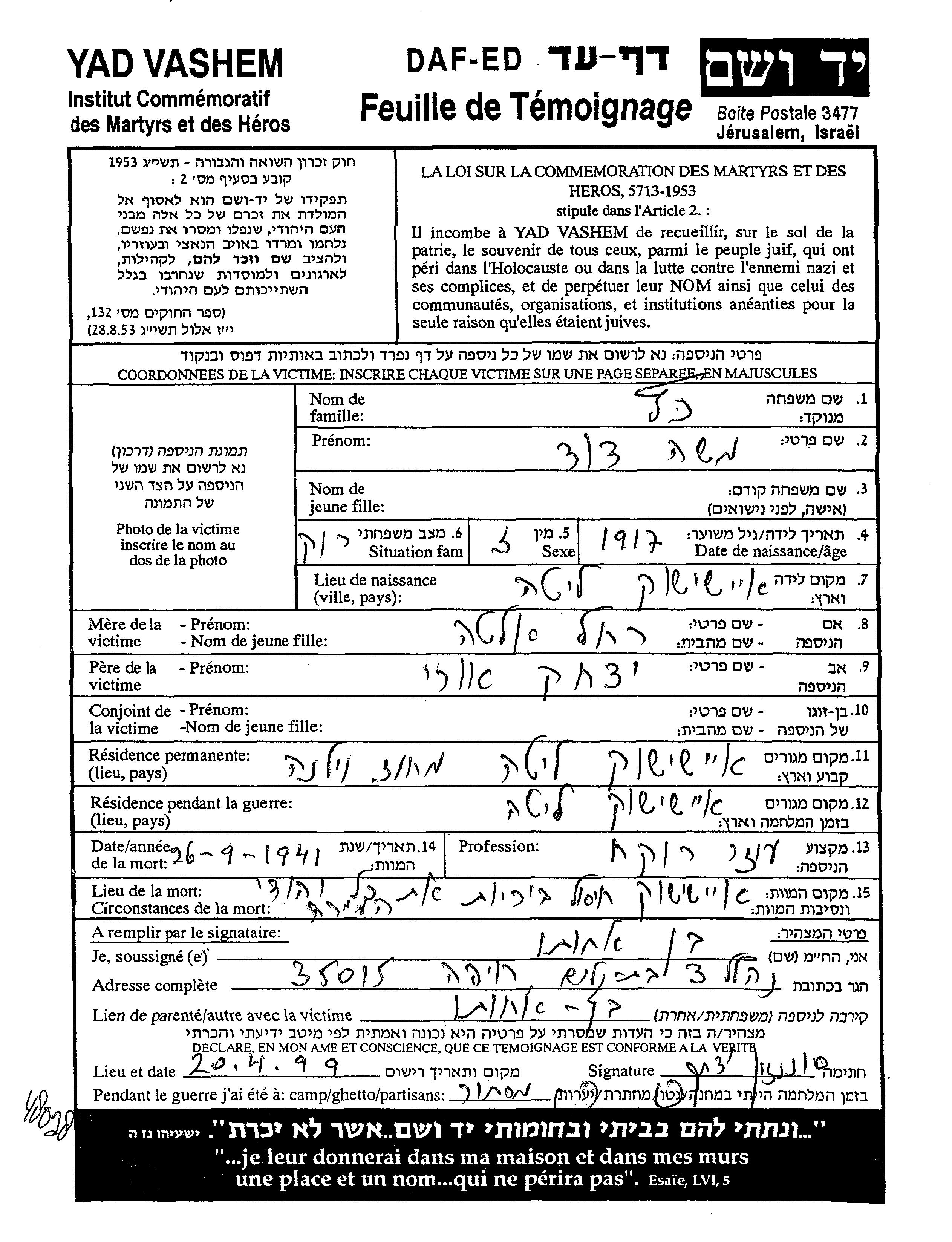Moshe David wurde in der Schoah ermordet. Todesort: Ejszyszki, Polen im Jahr 26/09/1941.