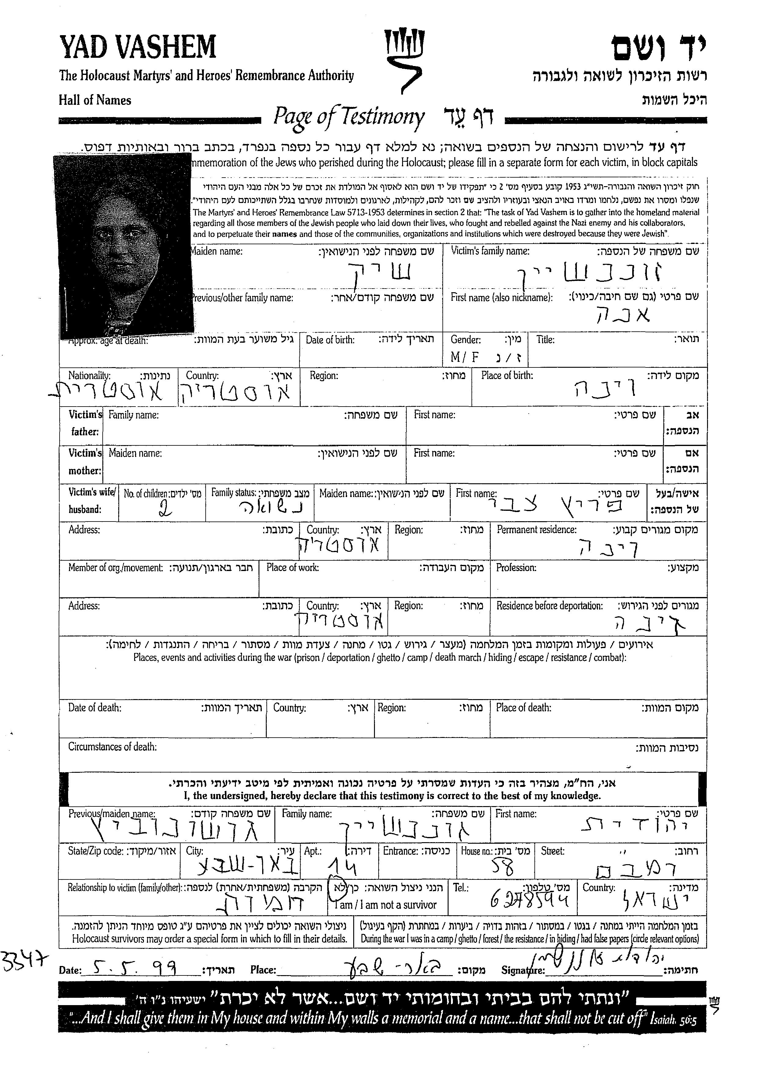 Ana Zonenshein, geb. Shik wurde in Wien, Österreich geboren. Sie war mit Fritz Tzvi Verheiratet. Vor dem Zweiten Weltkrieg lebte sie in Wien, Österreich. Während des Krieges war sie in Wien, Österreich.