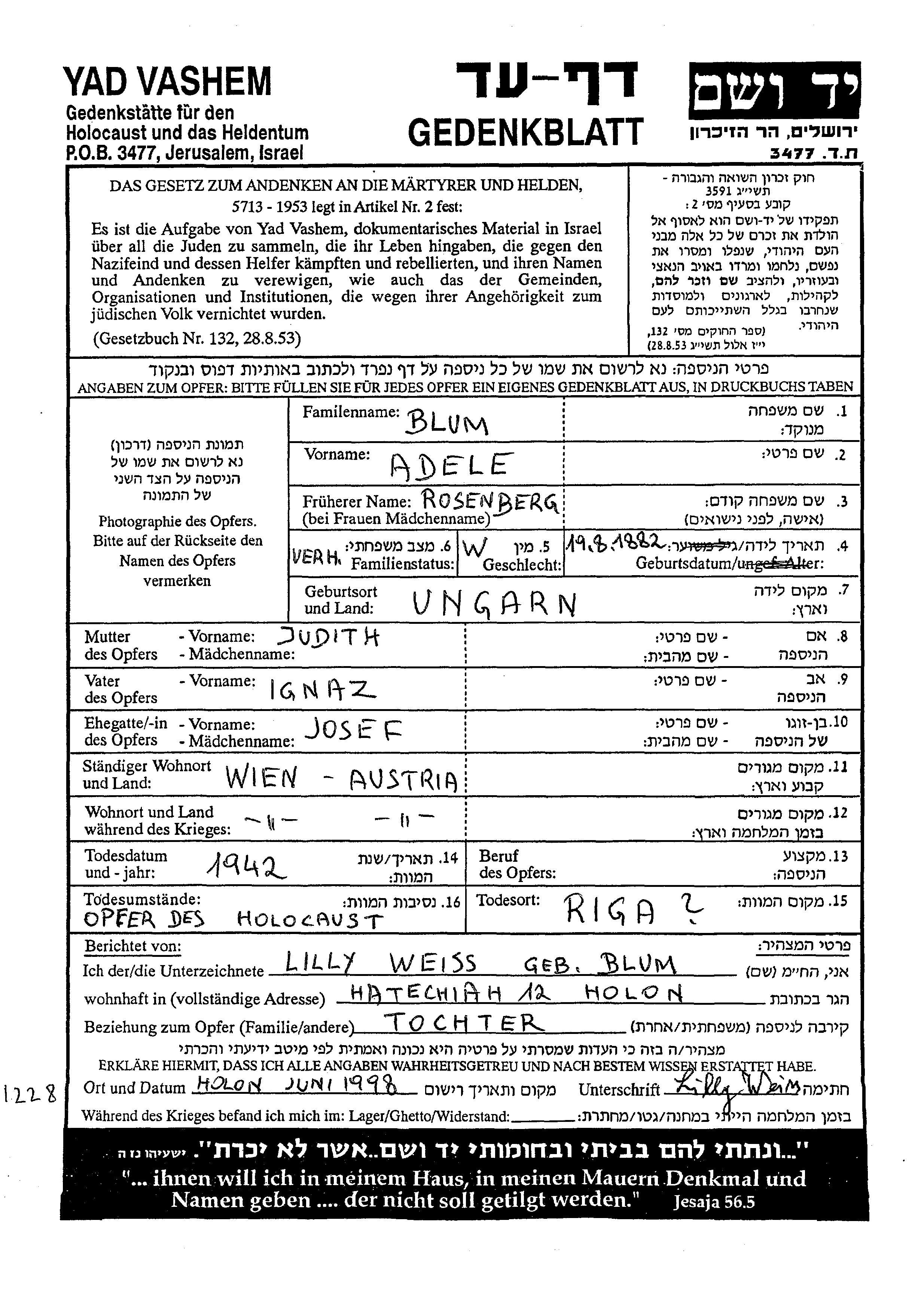 Suche nach einem Todesjahr im Zeitraum der Holocaust: 1933 bis 1945. Bitte wählen Sie 'Exakt' im Auswahlmenü, um nur nach einem einzelnen Jahr zu suchen, alternativ können Sie die flexibleren Optionen '+/- 2 Jahre' oder '+/- 5 Jahre' wählen.