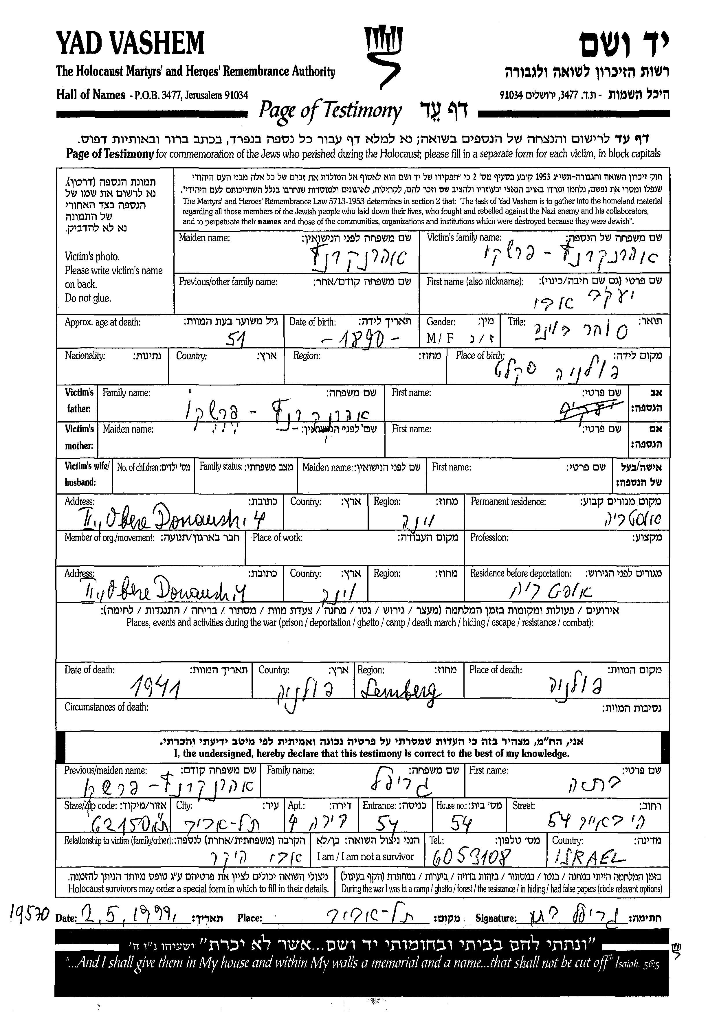 Yaakov wurde in der Schoah ermordet. Todesort: Lemberg, Polen im Jahr 1941.