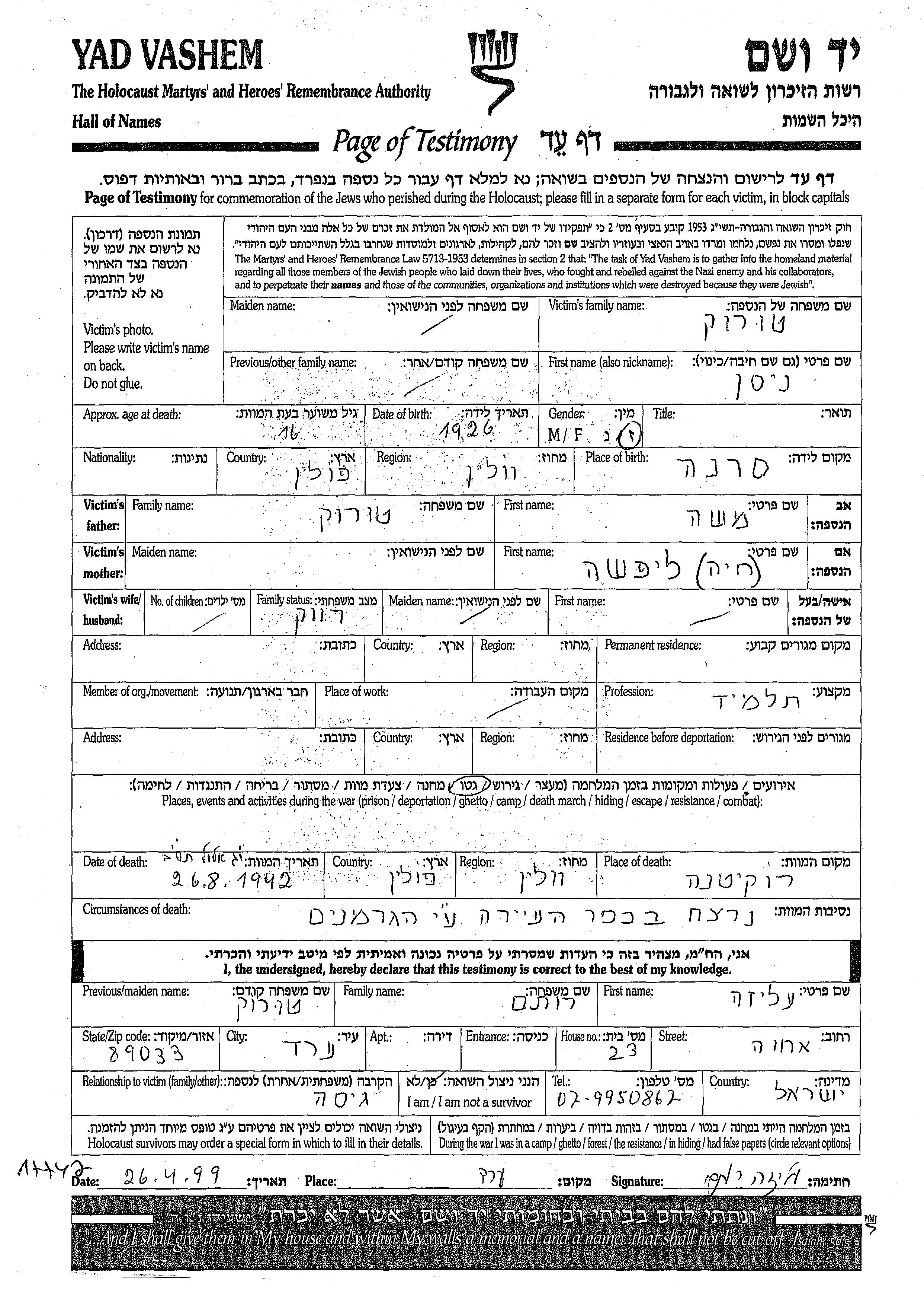 Suche nach einem Todesjahr im Zeitraum der Holocaust: 1933 bis 1945. Bitte wählen Sie 'Exakt' im Auswahlmenü, um nur nach einem einzelnen Jahr zu suchen, alternativ können Sie die flexibleren Optionen '+/- 2 Jahre' oder '+/- 5 Jahre' wählen.