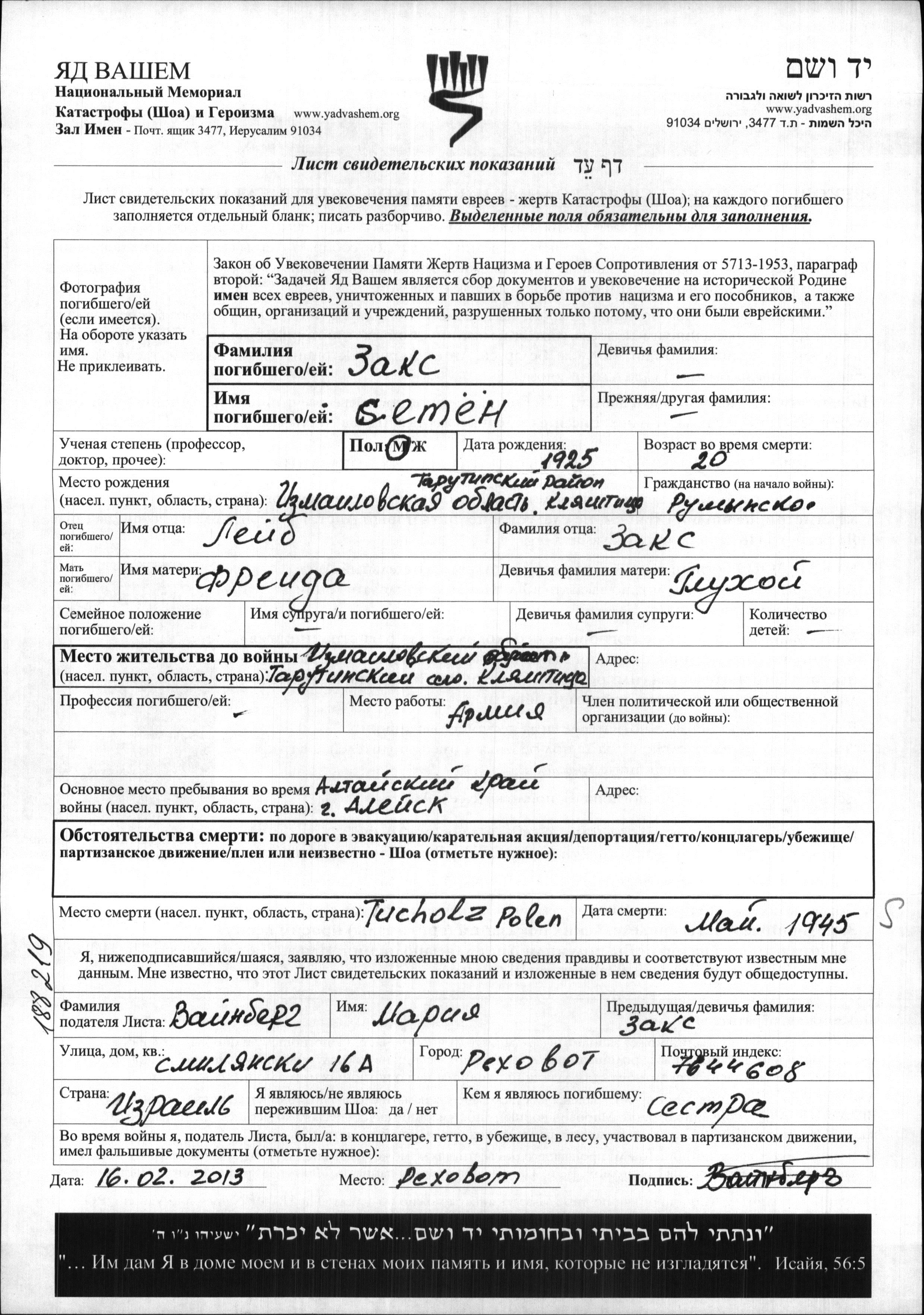 Suche nach einem Todesjahr im Zeitraum der Holocaust: 1933 bis 1945. Bitte wählen Sie 'Exakt' im Auswahlmenü, um nur nach einem einzelnen Jahr zu suchen, alternativ können Sie die flexibleren Optionen '+/- 2 Jahre' oder '+/- 5 Jahre' wählen.