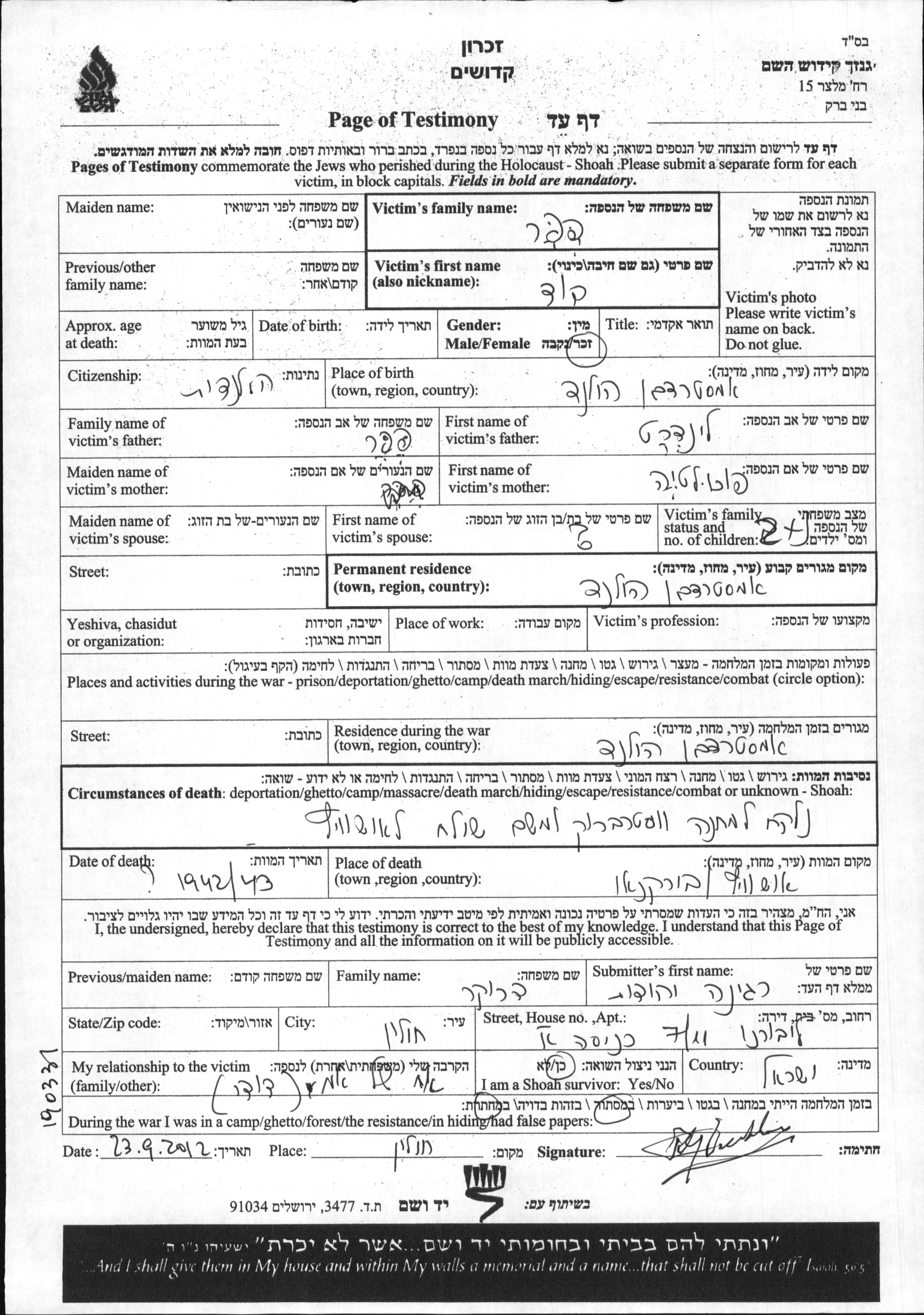 David wurde in der Schoah ermordet. Todesort: Auschwitz Birkenau, Polen im Jahr 1942.