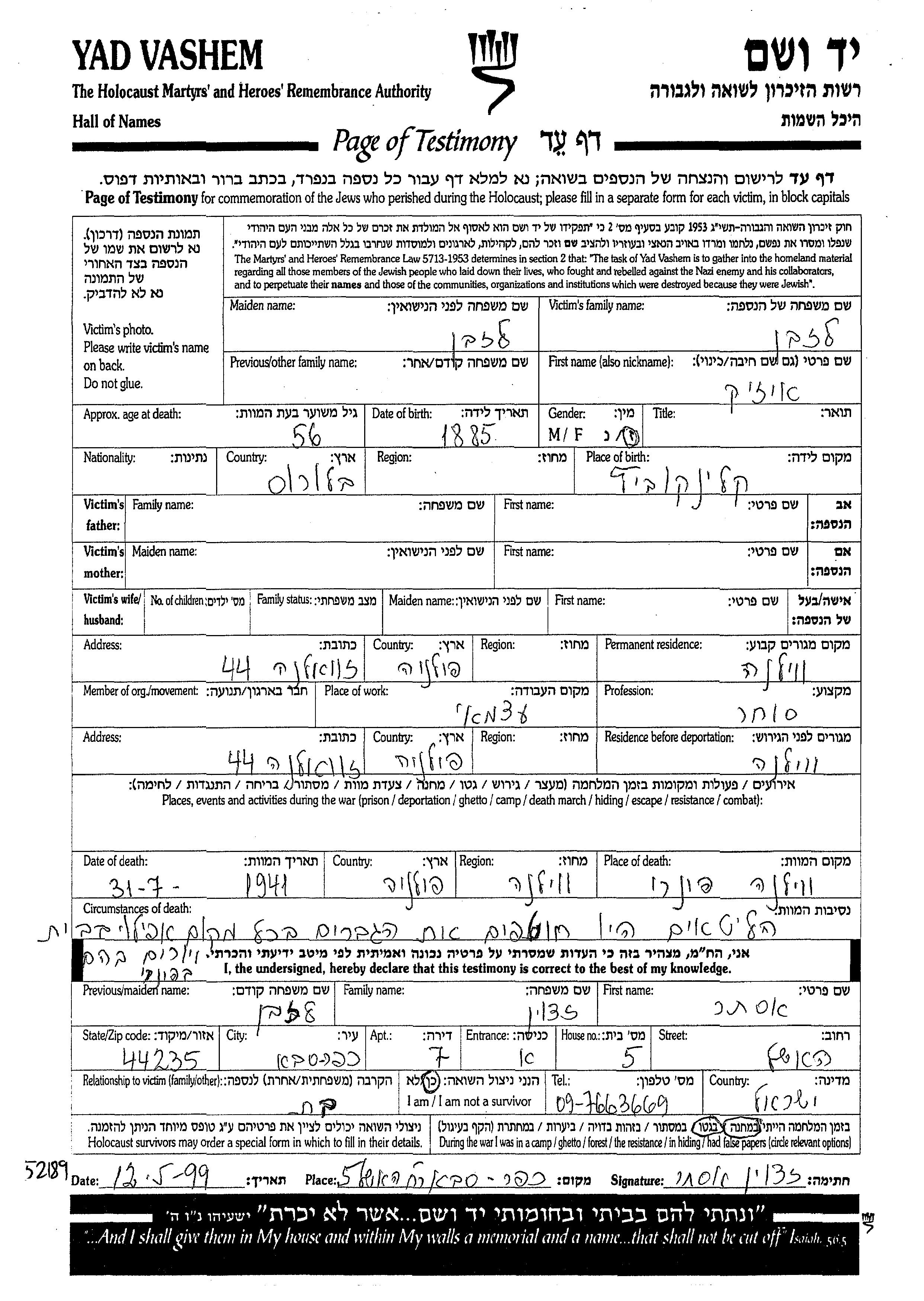 Aizik Lazben wurde im Jahr 1885 in Kalinkovitch, Weißrussland (UdSSR) geboren. Er war Kaufmann/-frau und Verheiratet. Vor dem Zweiten Weltkrieg lebte er in Wilna, Polen. Während des Krieges war er in Wilna, Polen.
