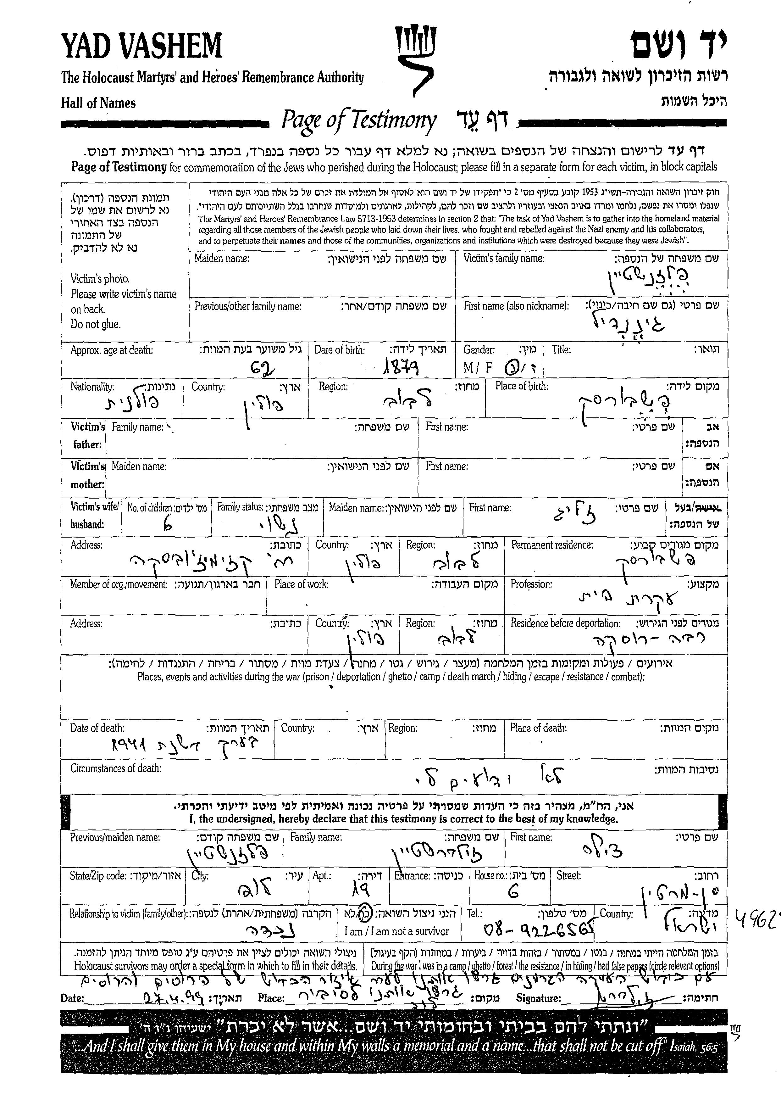 Suche nach einem Todesjahr im Zeitraum der Holocaust: 1933 bis 1945. Bitte wählen Sie 'Exakt' im Auswahlmenü, um nur nach einem einzelnen Jahr zu suchen, alternativ können Sie die flexibleren Optionen '+/- 2 Jahre' oder '+/- 5 Jahre' wählen.