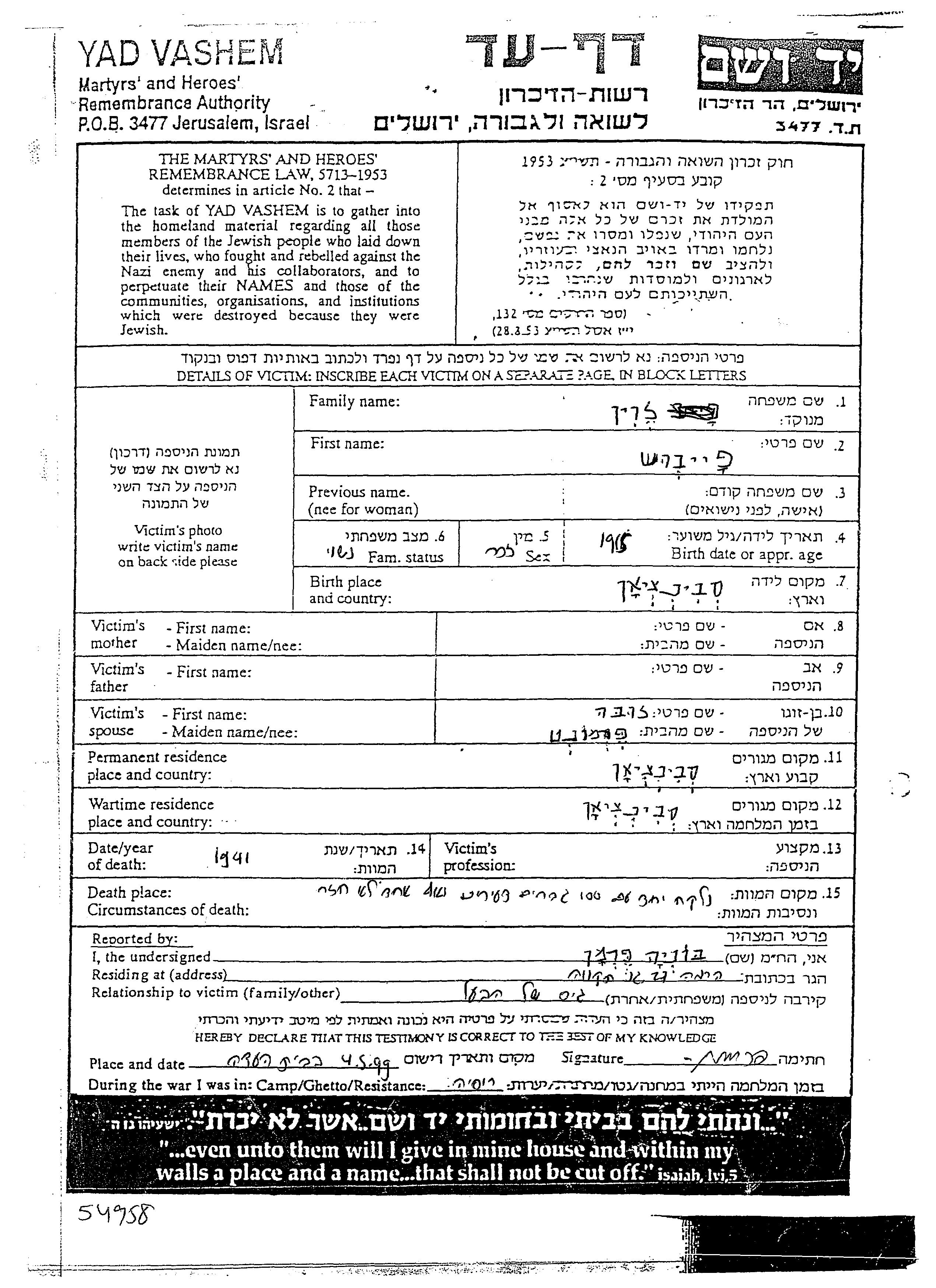 Feibush wurde in der Schoah ermordet. Todesort: unbekannt im Jahr 1941.