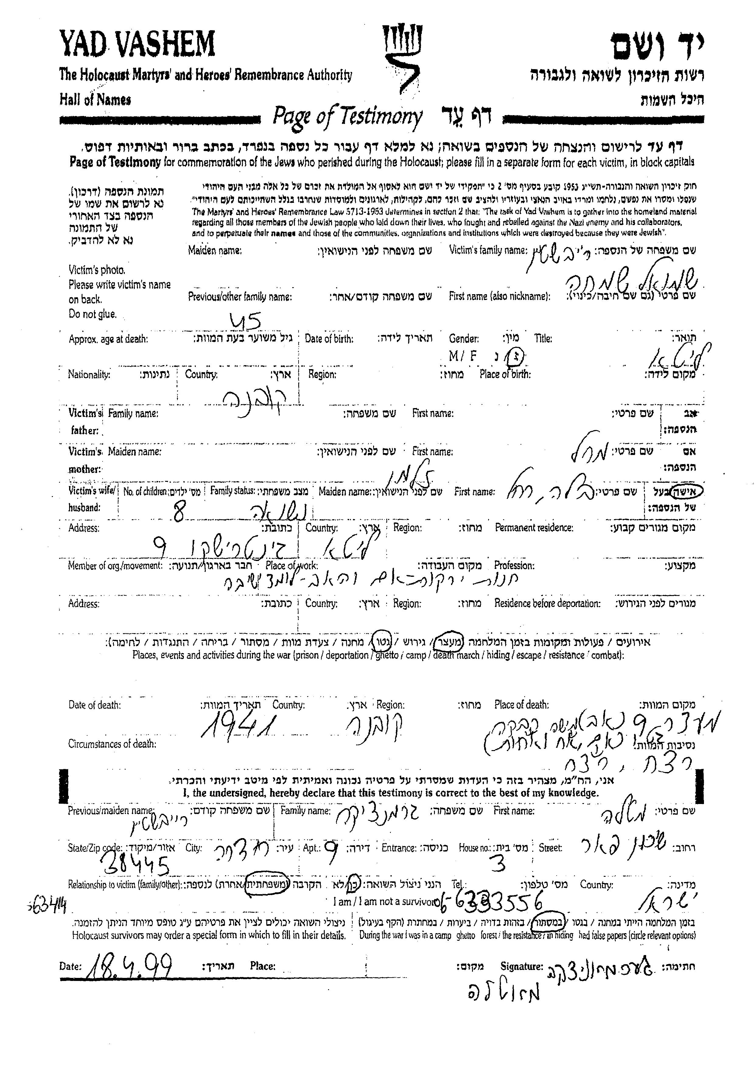 Shmuel Simkha wurde in der Schoah ermordet. Todesort: Kowna, Litauen im Jahr 1941.