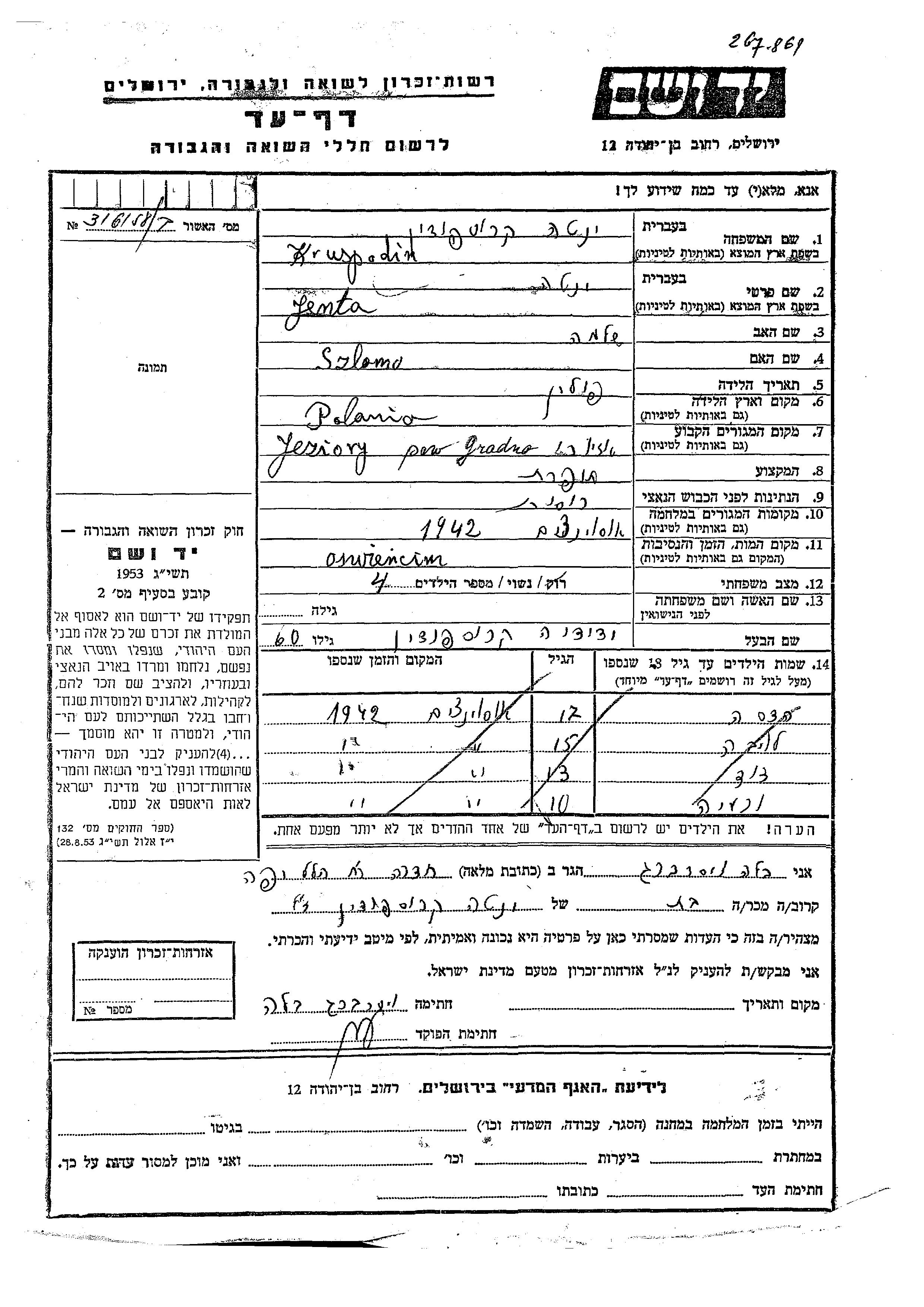 Kruspodin | Raya | Jeziory, Polen | Gedenkblatt | |