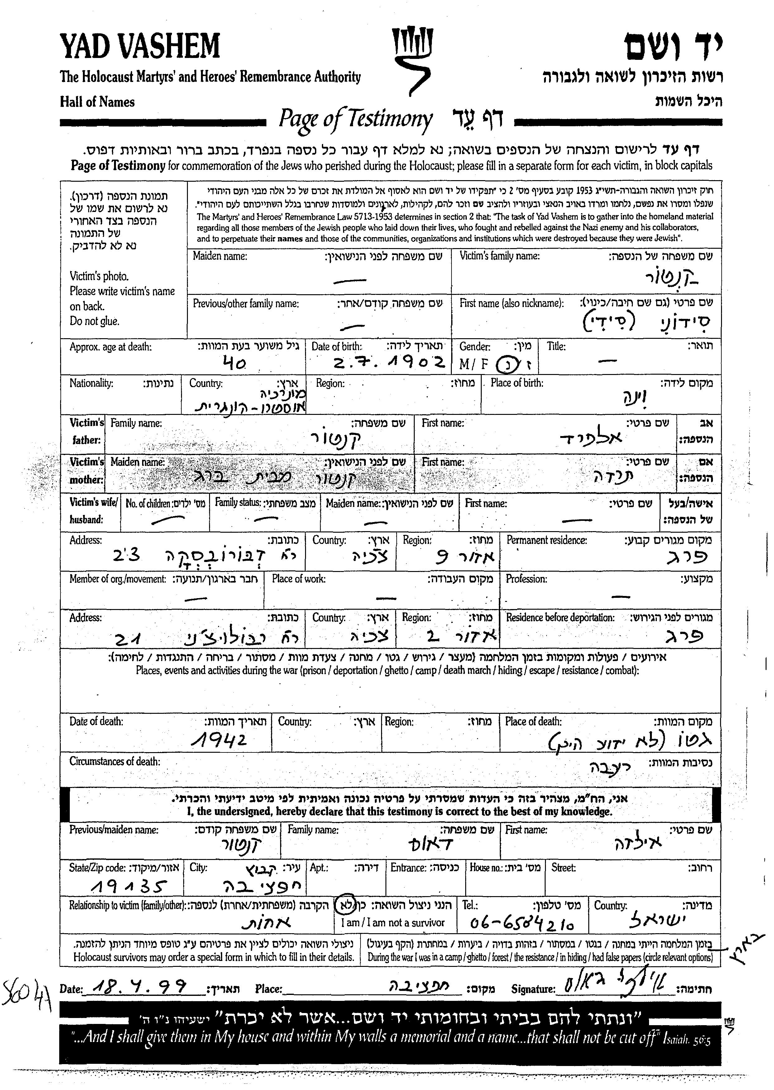 Sidonia wurde in der Schoah ermordet. Todesort: unbekannt im Jahr 1942.