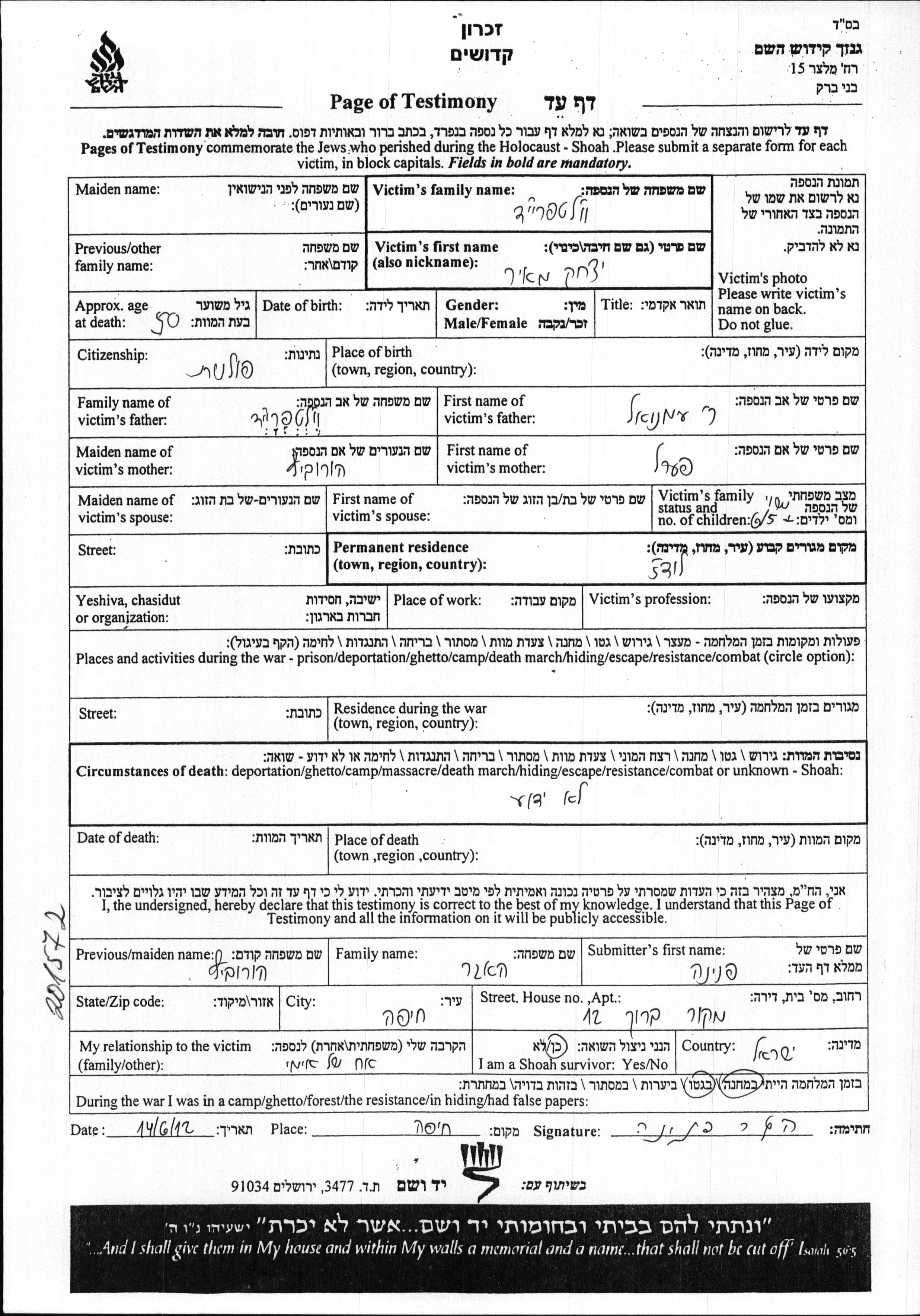 Yitzkhak Meir wurde in der Schoah ermordet.