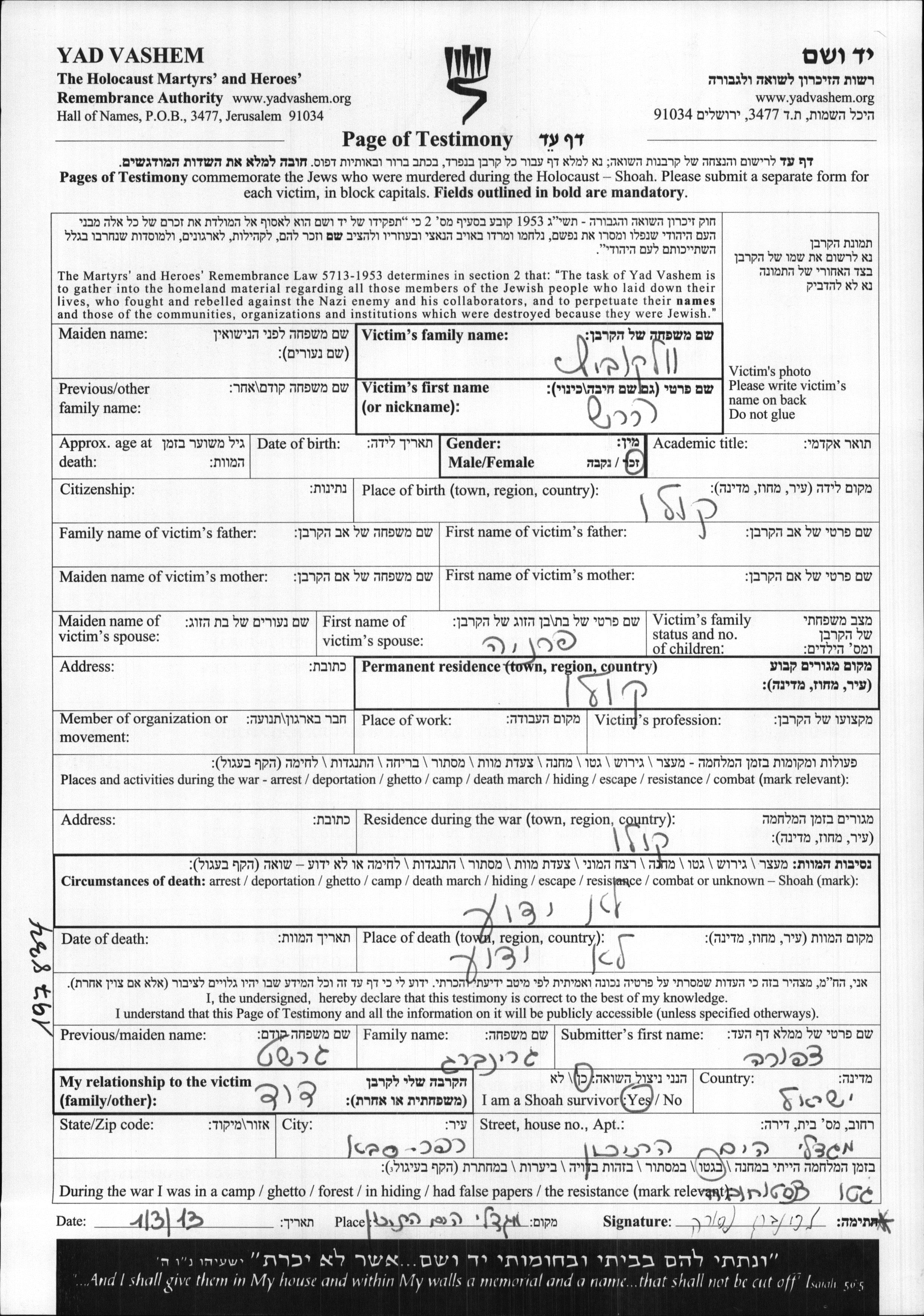 Hersh Volkovitz wurde in Kolo, Polen geboren. Er war mit Frania Verheiratet. Vor dem Zweiten Weltkrieg lebte er in Kolo, Polen. Während des Krieges war er in Kolo, Polen.