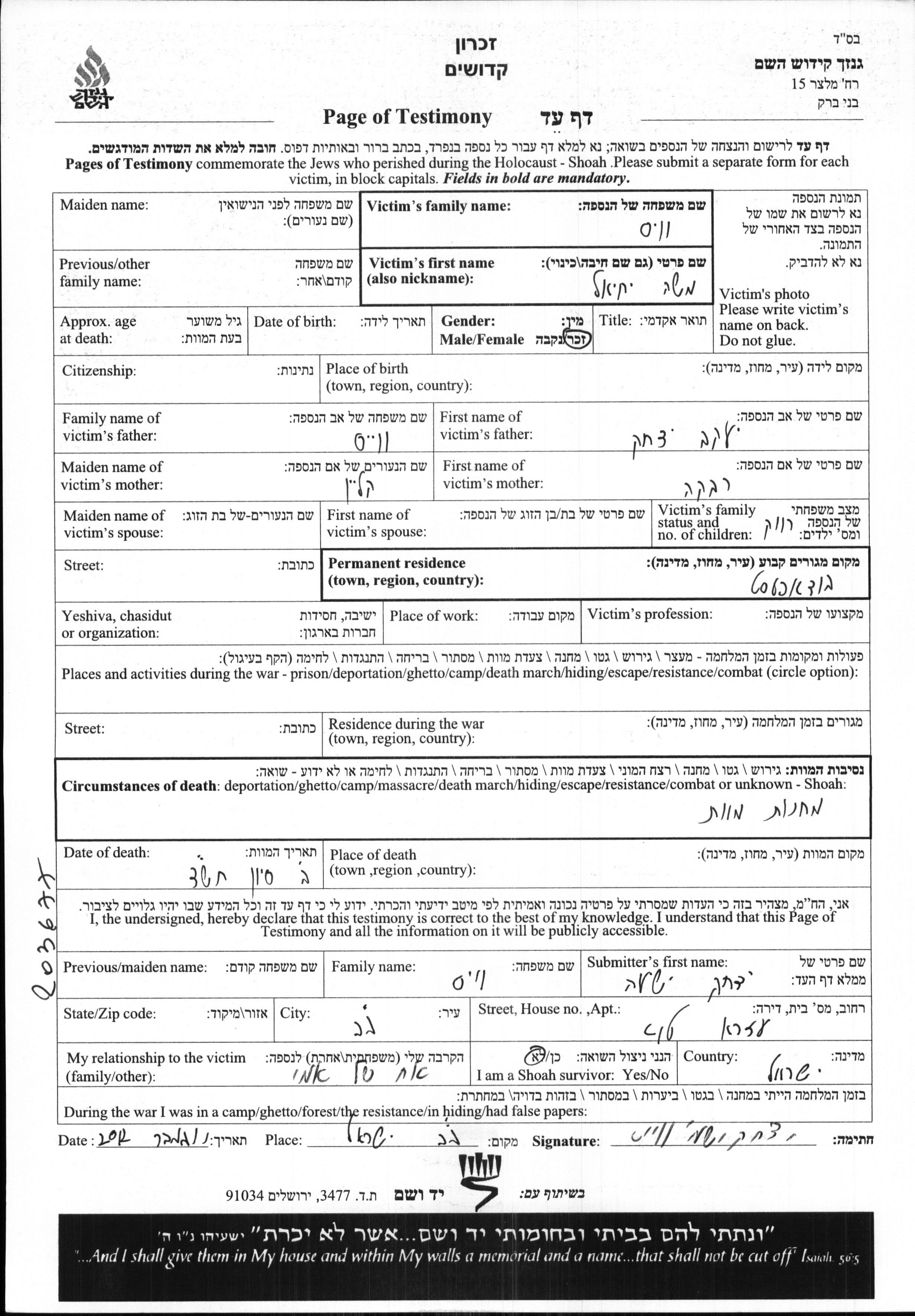 Moshe Yekhiel wurde in der Schoah ermordet. Todesort: unbekannt im Jahr 27/05/1944.