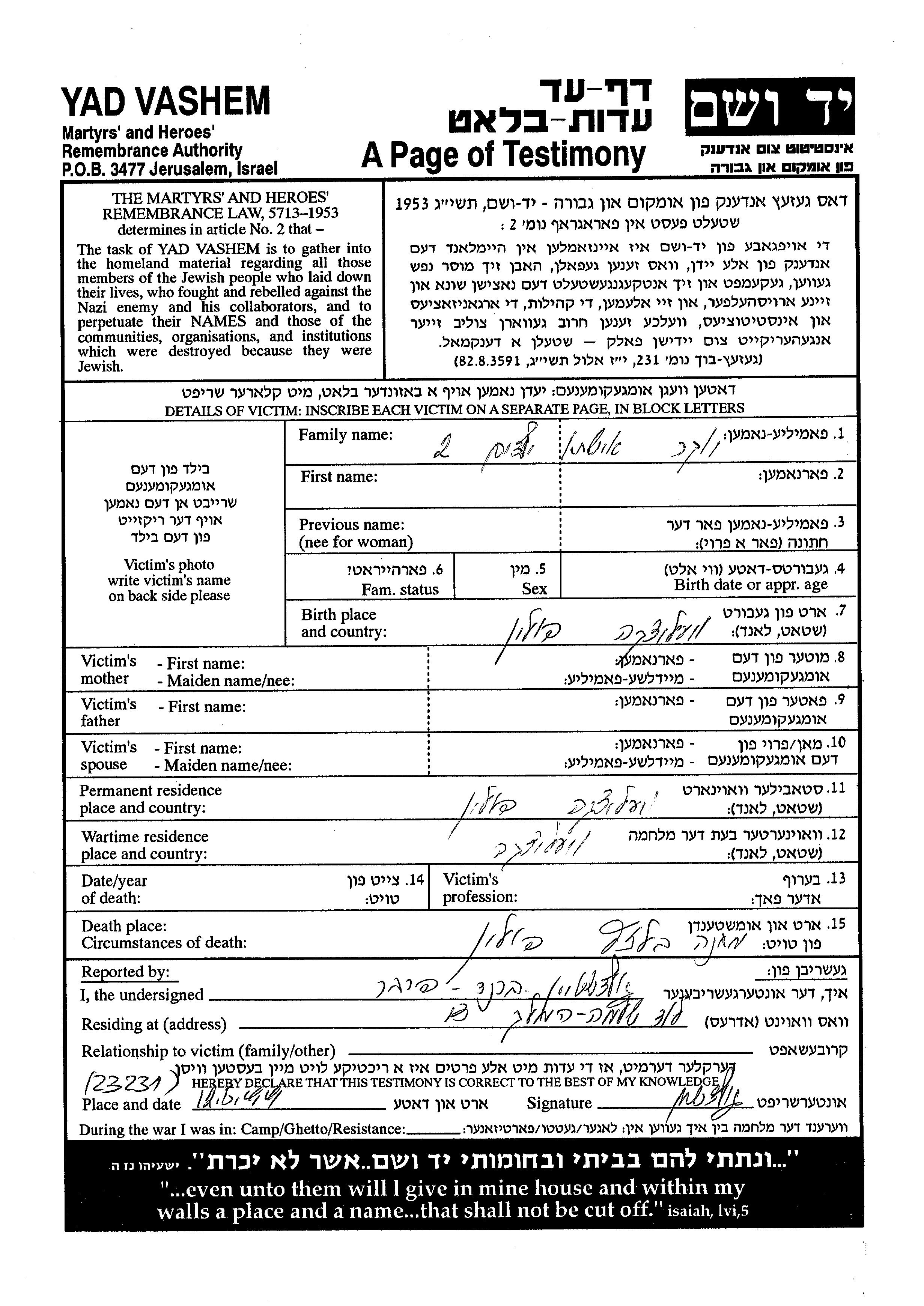 Iuker Vorname unbekannt Wialiszka, Polen Gedenkblatt