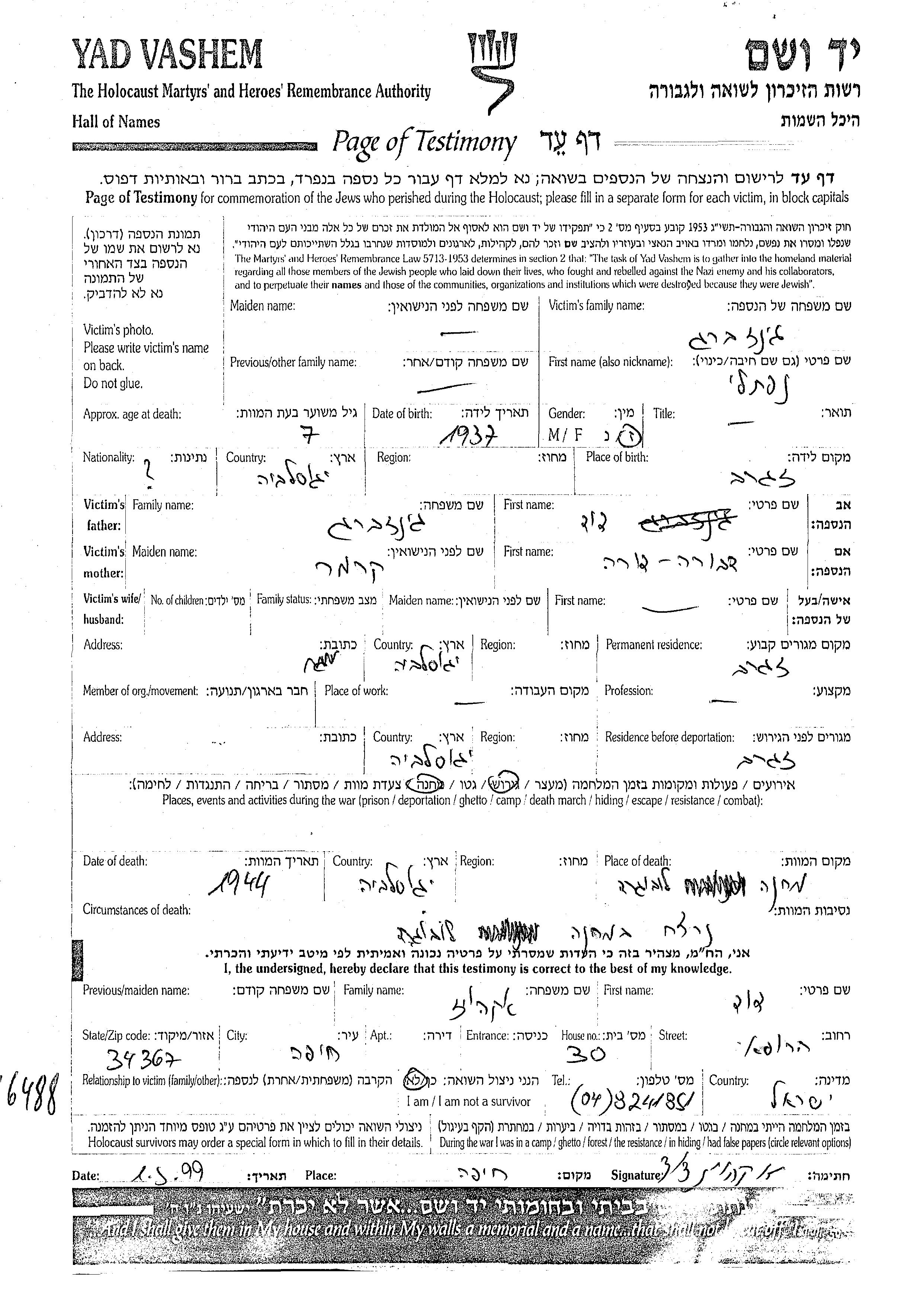 Naftali wurde in der Schoah ermordet. Todesort: Lobograd, Jugoslawien im Jahr 1944.
