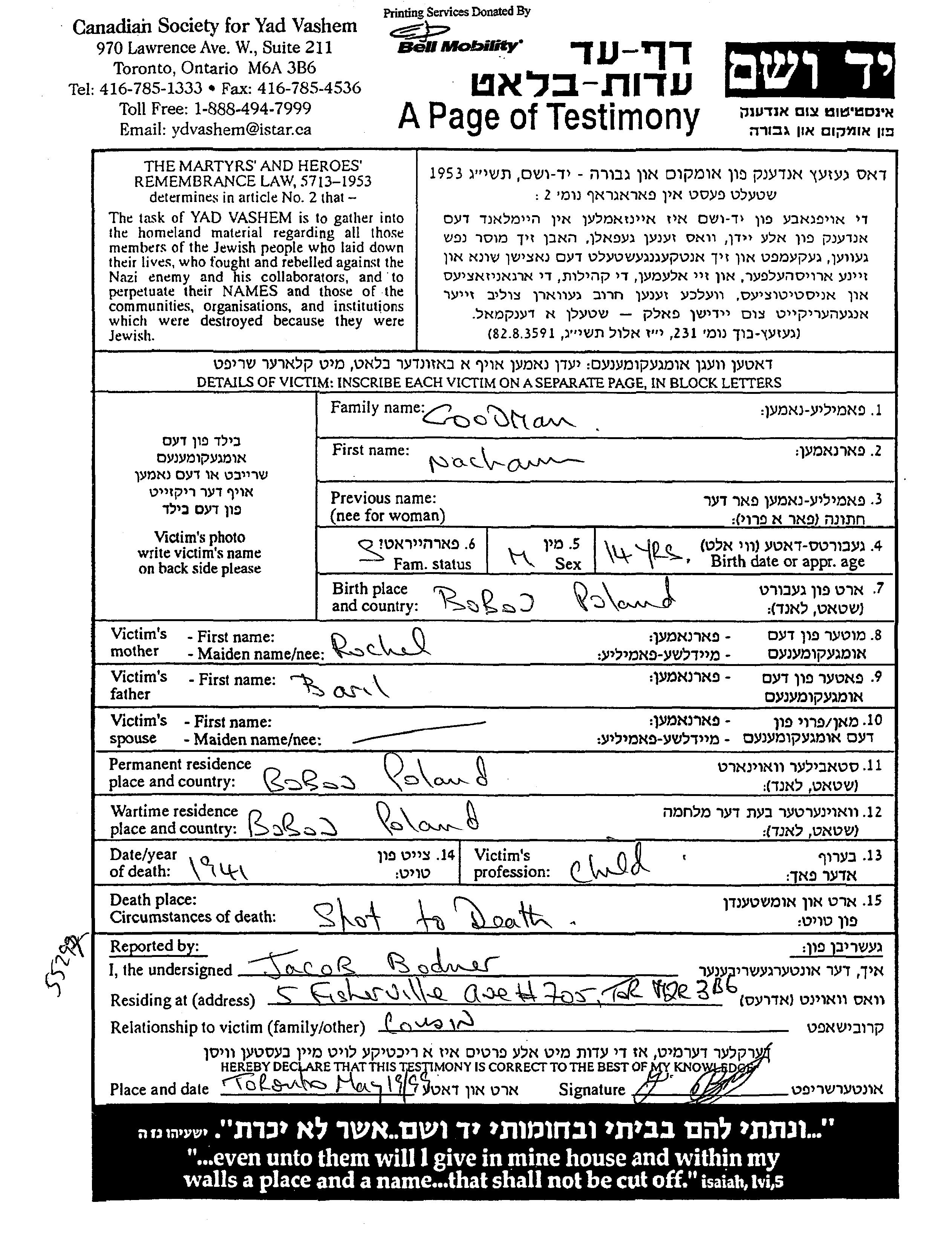 Juden wurden in der Schoah auf verschiedenste Weisen ermordet, unter anderem: Vergasen, Erschiessen, lebendig verbrannt werden, lebendig begraben werden, Tod durch Erschöpfung durch Zwangsarbeit, Epidemien, mangels jeder hygienischer Bedingung oder dem Fehlen medizinischer Versorgung. Manche Juden nahmen sich das Leben, um der Festnahme und weiterer Verfolgung zu entgehen oder ihr hoffnungsloses, nicht nachlassendes Leiden zu beenden.
