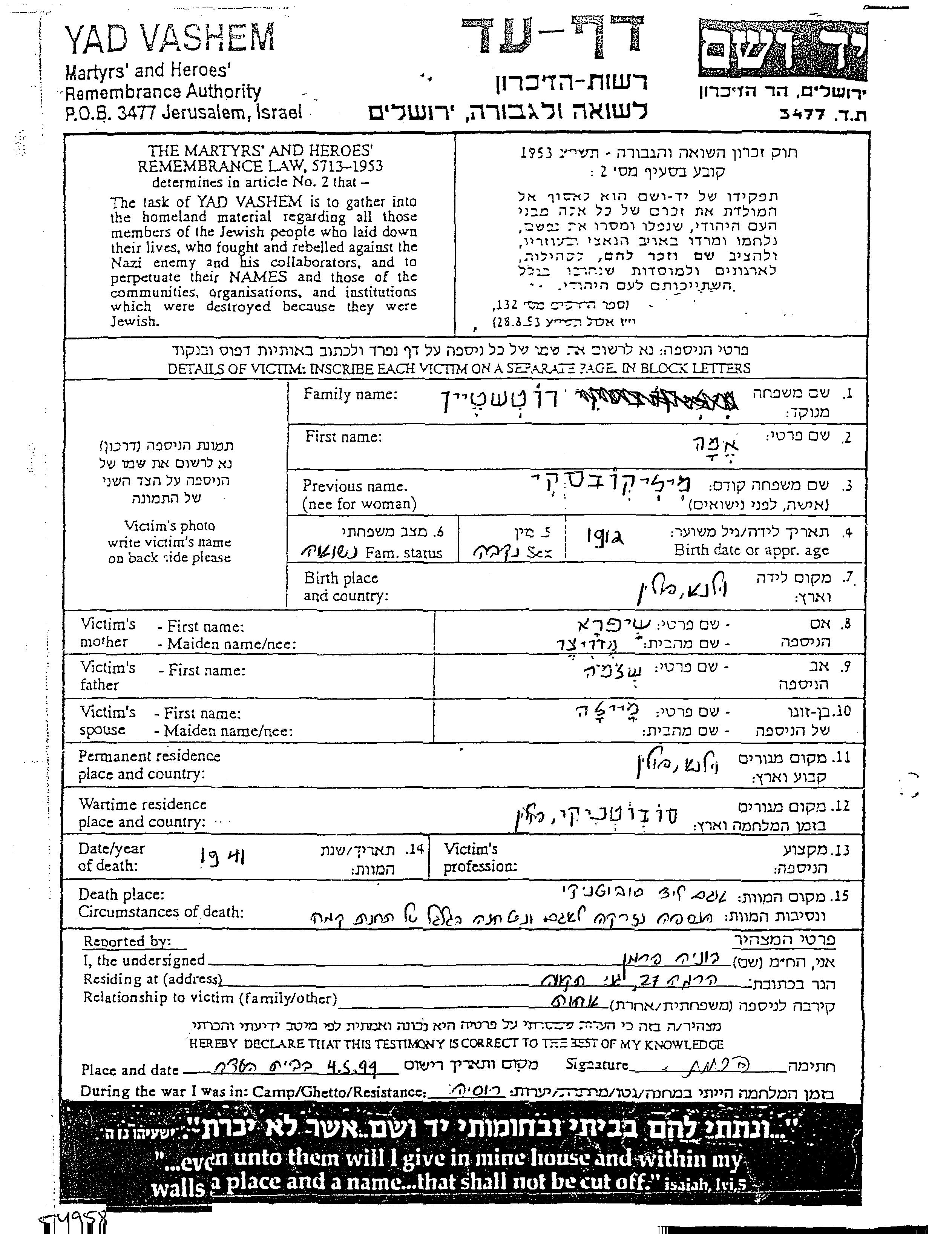 Ema wurde in der Schoah ermordet. Todesort: Subotniki, Polen im Jahr 1941.