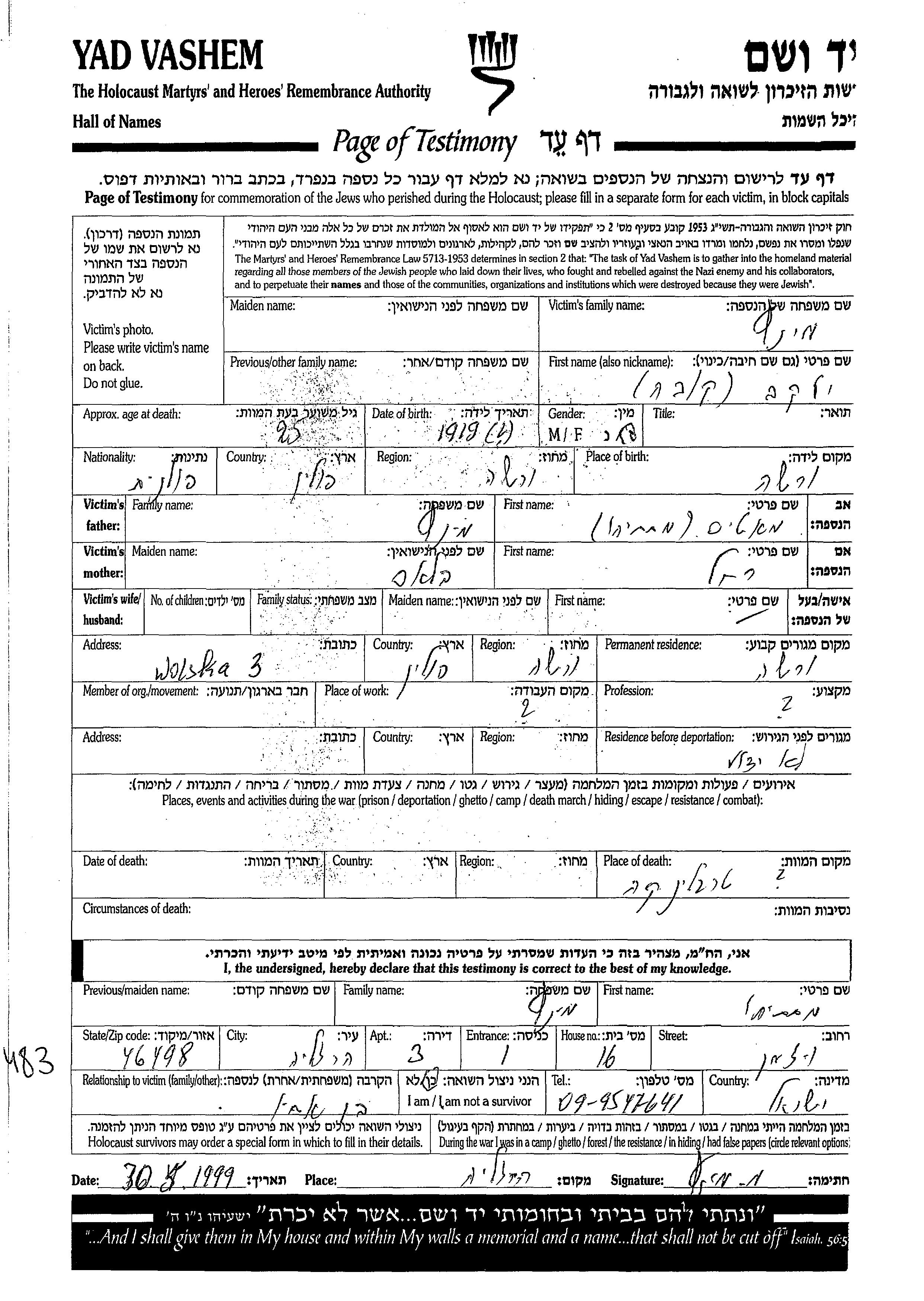 Yaakov wurde in der Schoah ermordet. Todesort: Treblinka, Polen.