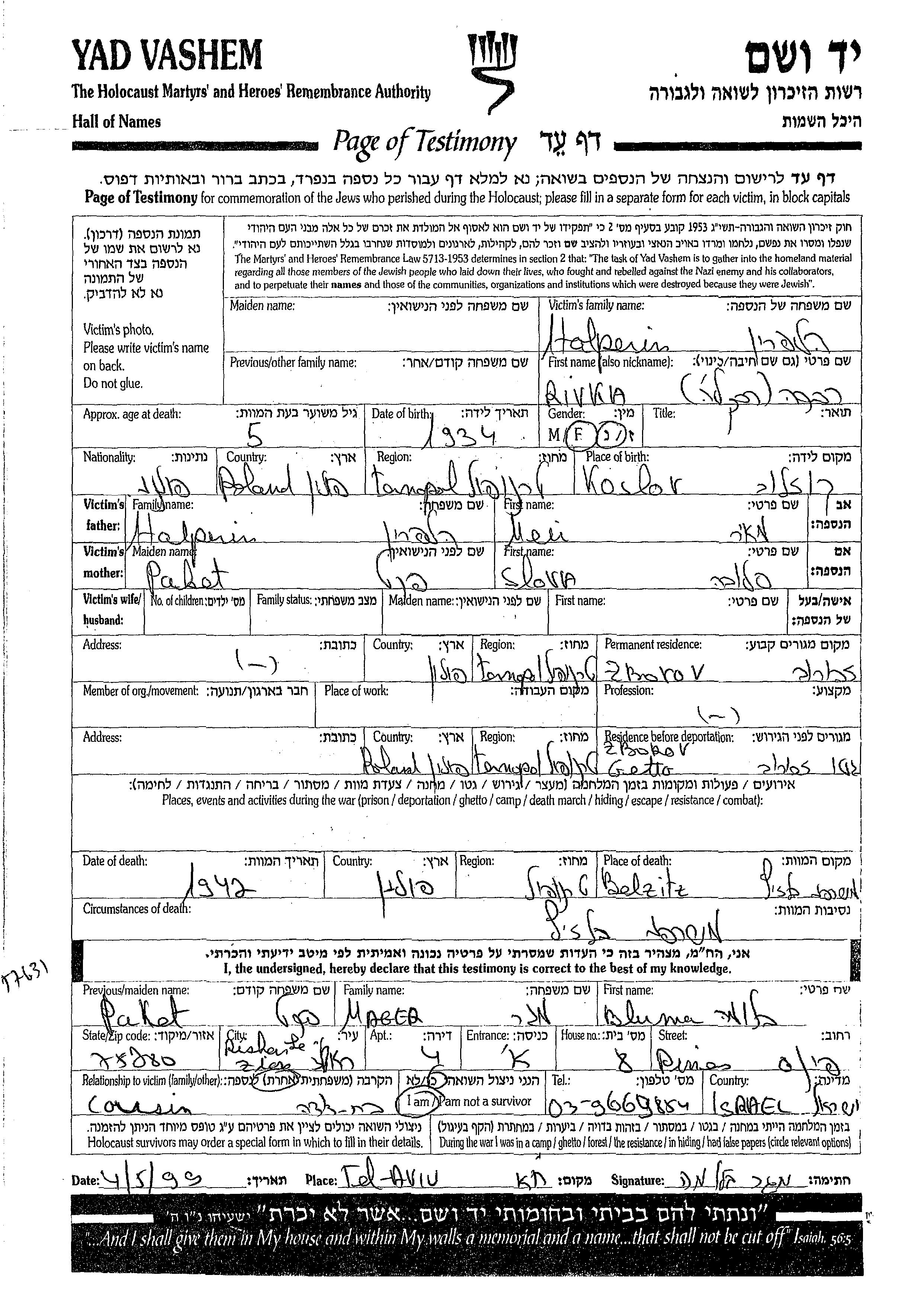 Rivka wurde in der Schoah ermordet. Todesort: Belzec, Polen im Jahr 1942.