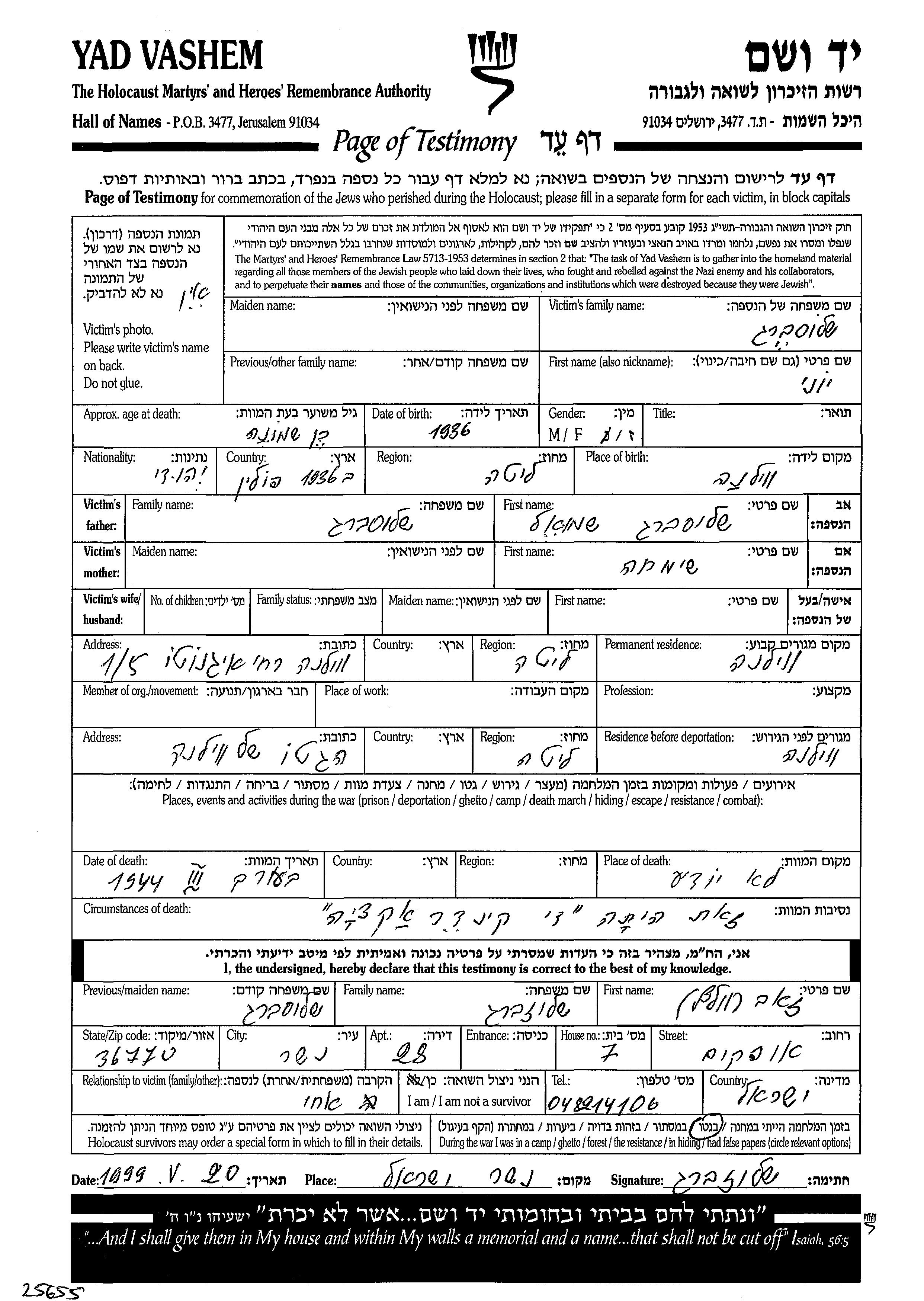 Ioni wurde in der Schoah ermordet. Todesort: unbekannt im Jahr 03/1944.