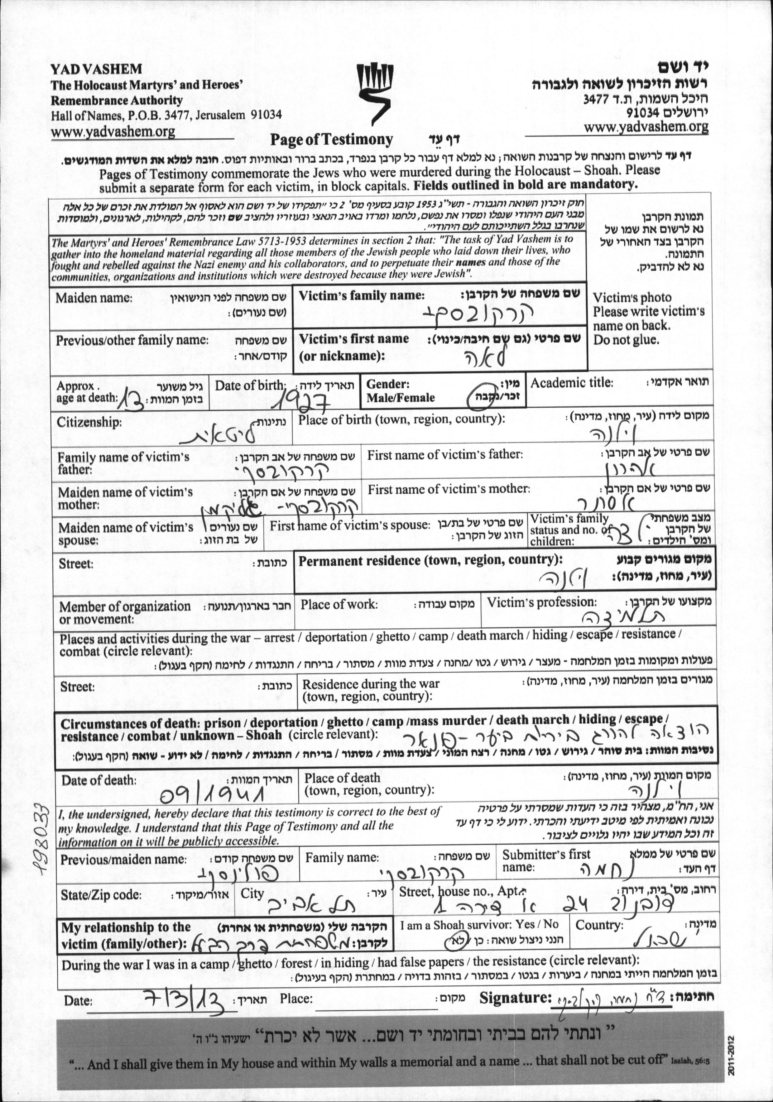 Lea wurde in der Schoah ermordet. Todesort: Ponari, Polen im Jahr 09/1941.