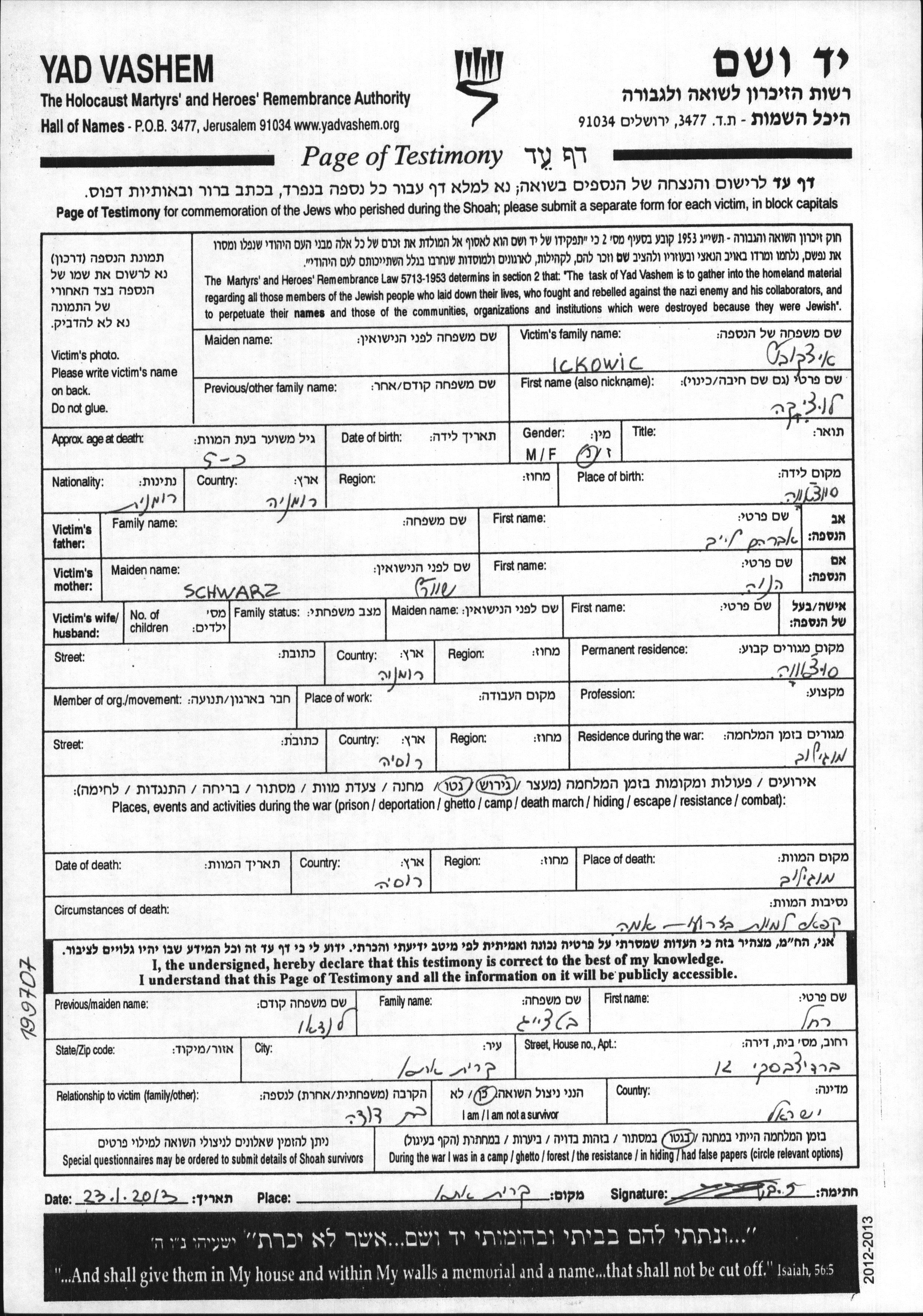 Luchika Ickowic wurde in Suceava, Rumänien geboren. Sie war die Tochter von Avraham Leib und Henia, geb. Schwarz. Sie war Kind. Vor dem Zweiten Weltkrieg lebte sie in Suceava, Rumänien. Während des Krieges war sie in Mogilev Podolski, Ukraine (UdSSR).