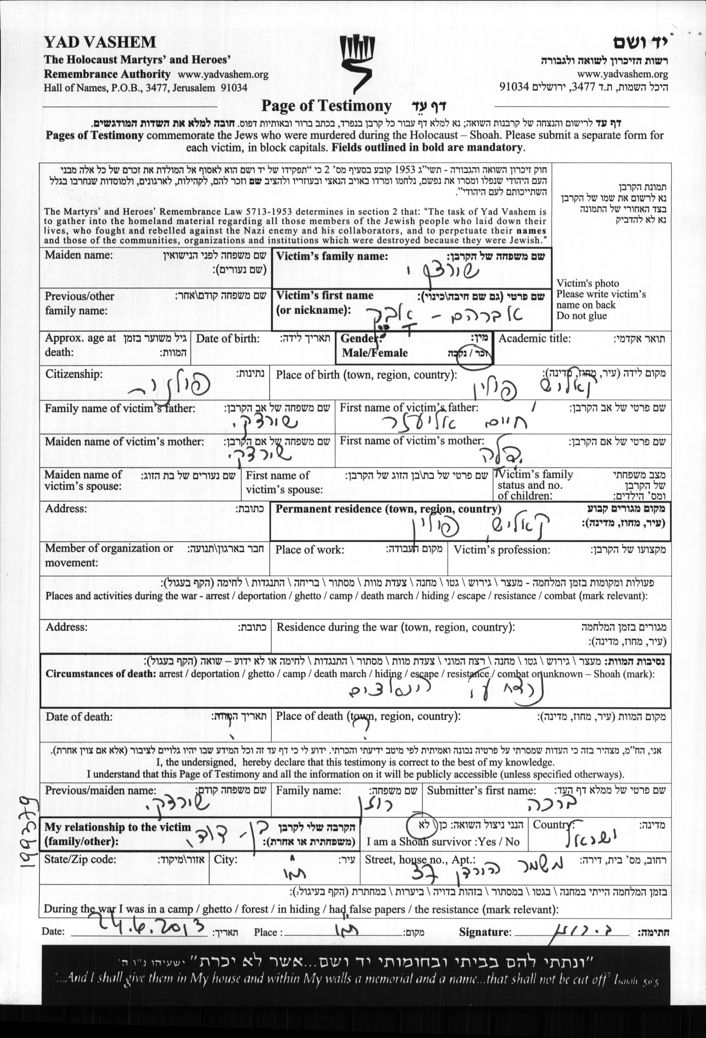 Avraham Abek wurde in der Schoah ermordet.