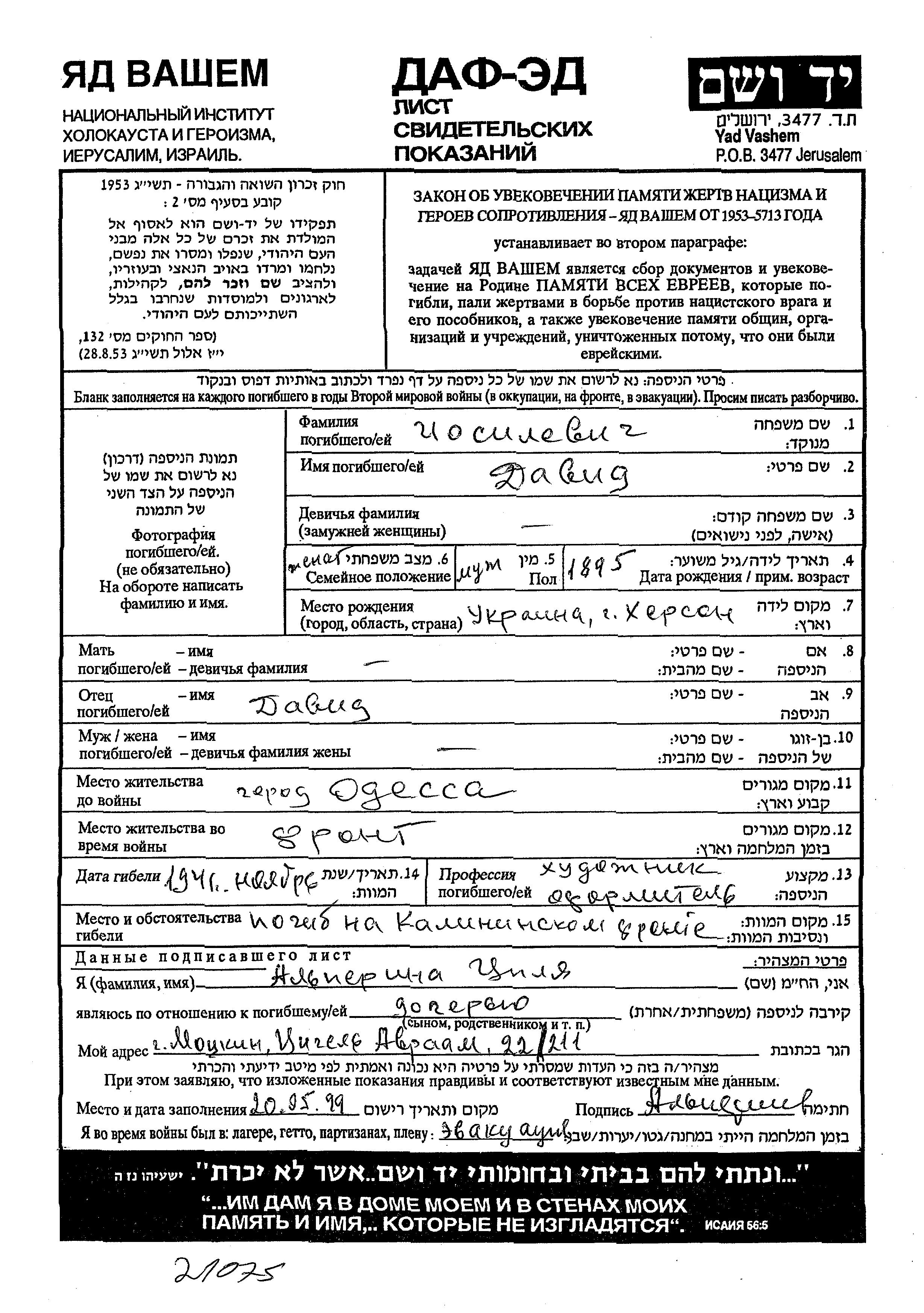 Suche nach einem Todesjahr im Zeitraum der Holocaust: 1933 bis 1945. Bitte wählen Sie 'Exakt' im Auswahlmenü, um nur nach einem einzelnen Jahr zu suchen, alternativ können Sie die flexibleren Optionen '+/- 2 Jahre' oder '+/- 5 Jahre' wählen.