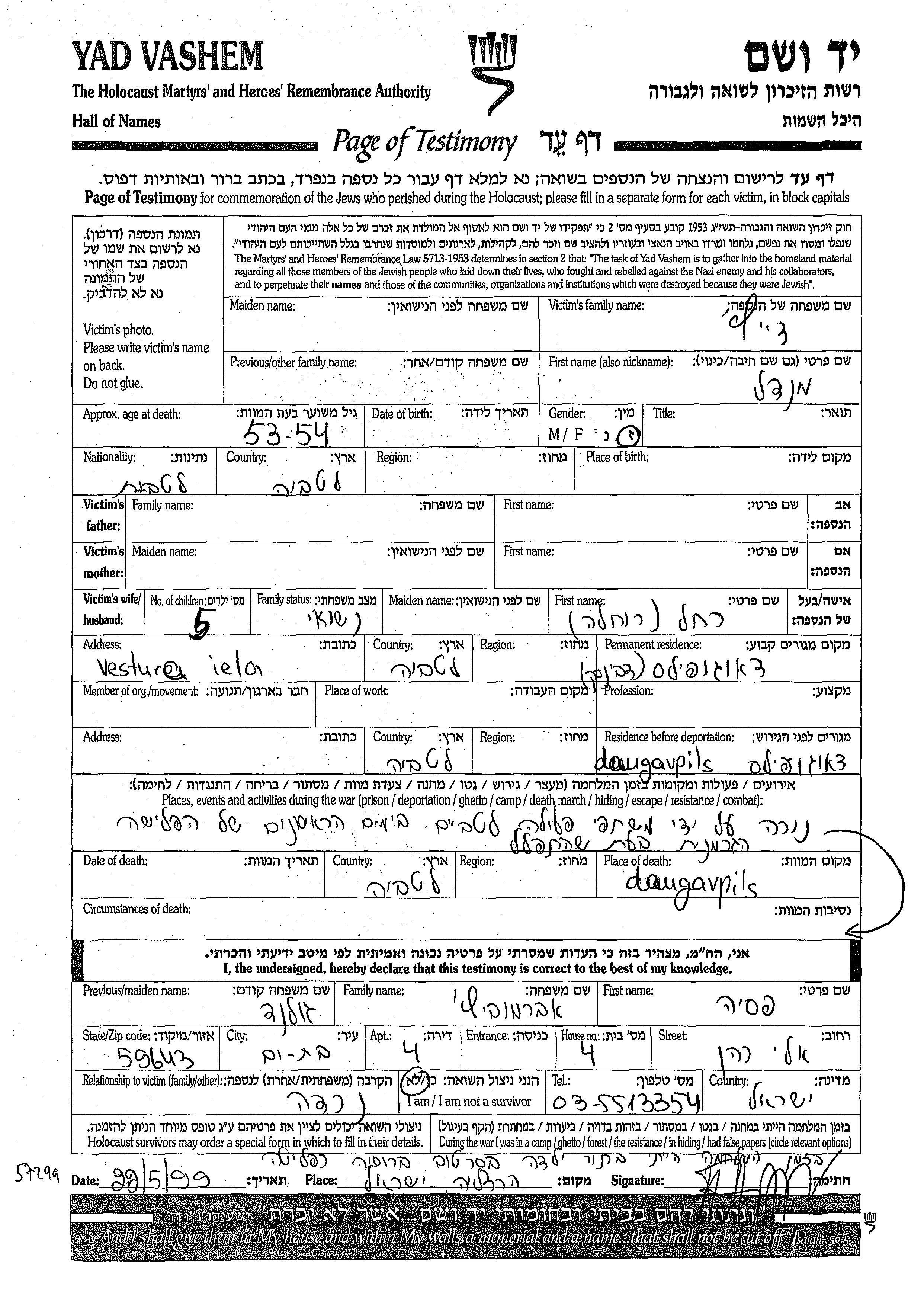 Mendel wurde in der Schoah ermordet. Todesort: Dwinsk, Lettland.