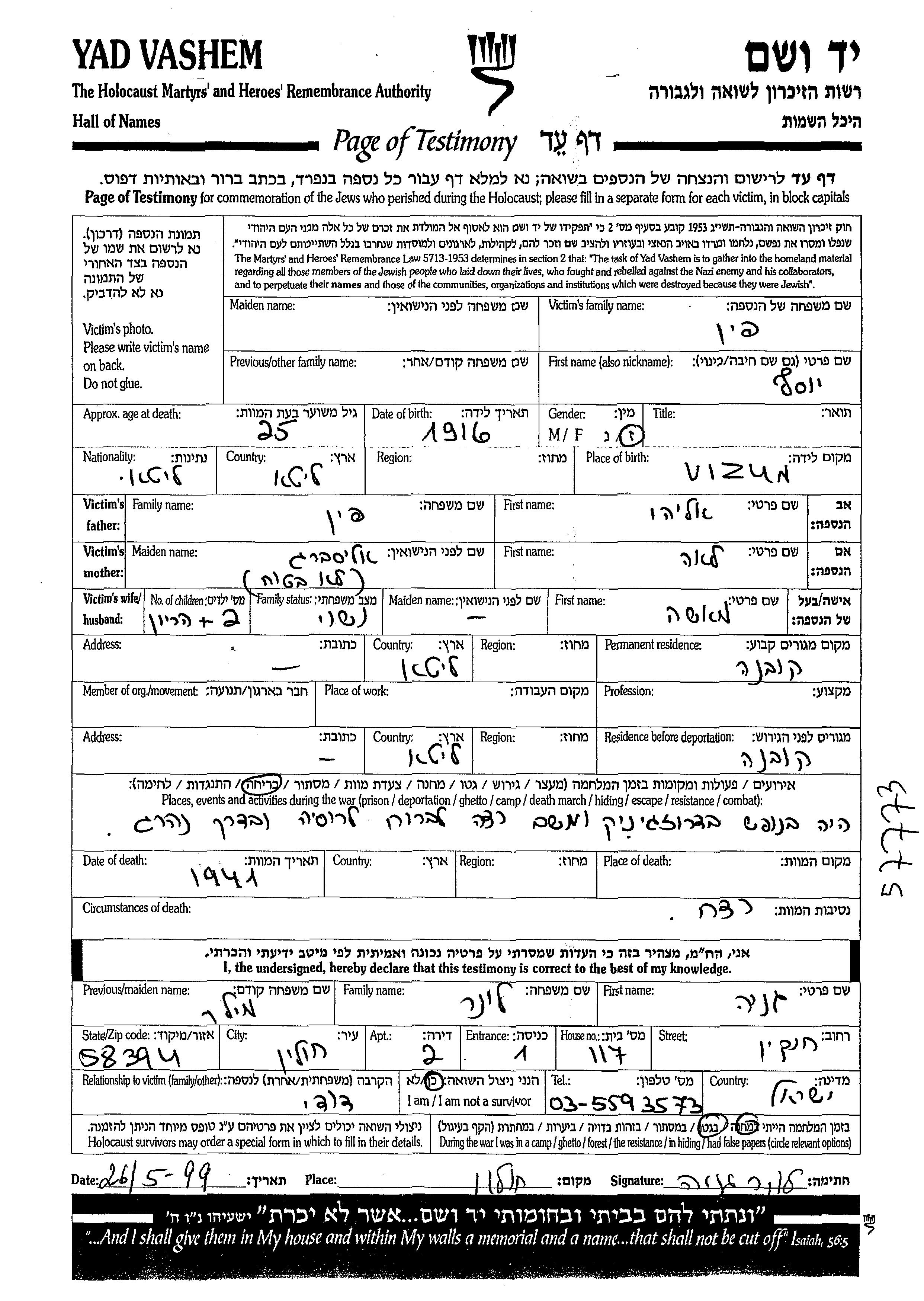 Yosef wurde in der Schoah ermordet. Todesort: unbekannt im Jahr 1941.