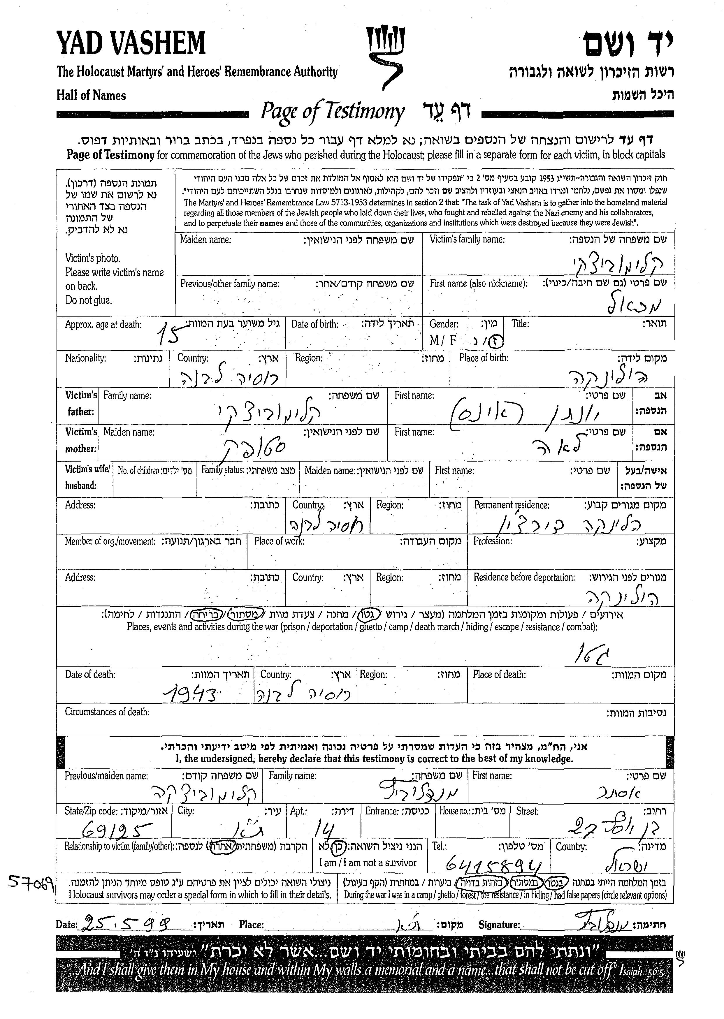 Mekhael wurde in der Schoah ermordet. Todesort: Weißrussland (UdSSR) im Jahr 1943.
