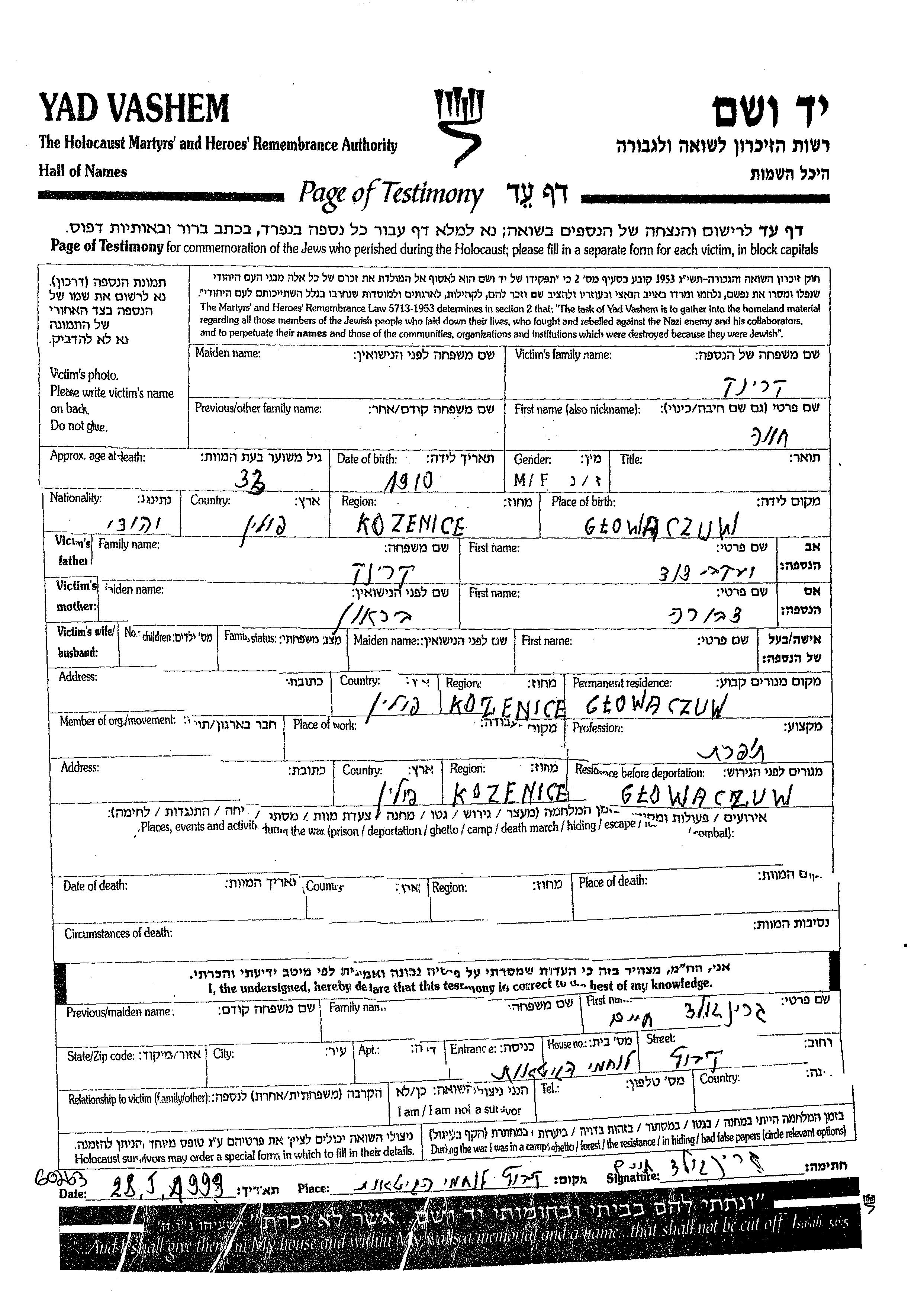 Khava Kreinik wurde im Jahr 1910 in Glowaczow, Polen geboren. Sie war die Tochter von Yaakov David und Dvora. Sie war Schneiderin. Vor dem Zweiten Weltkrieg lebte sie in Glowaczow, Polen. Während des Krieges war sie in Glowaczow, Polen.