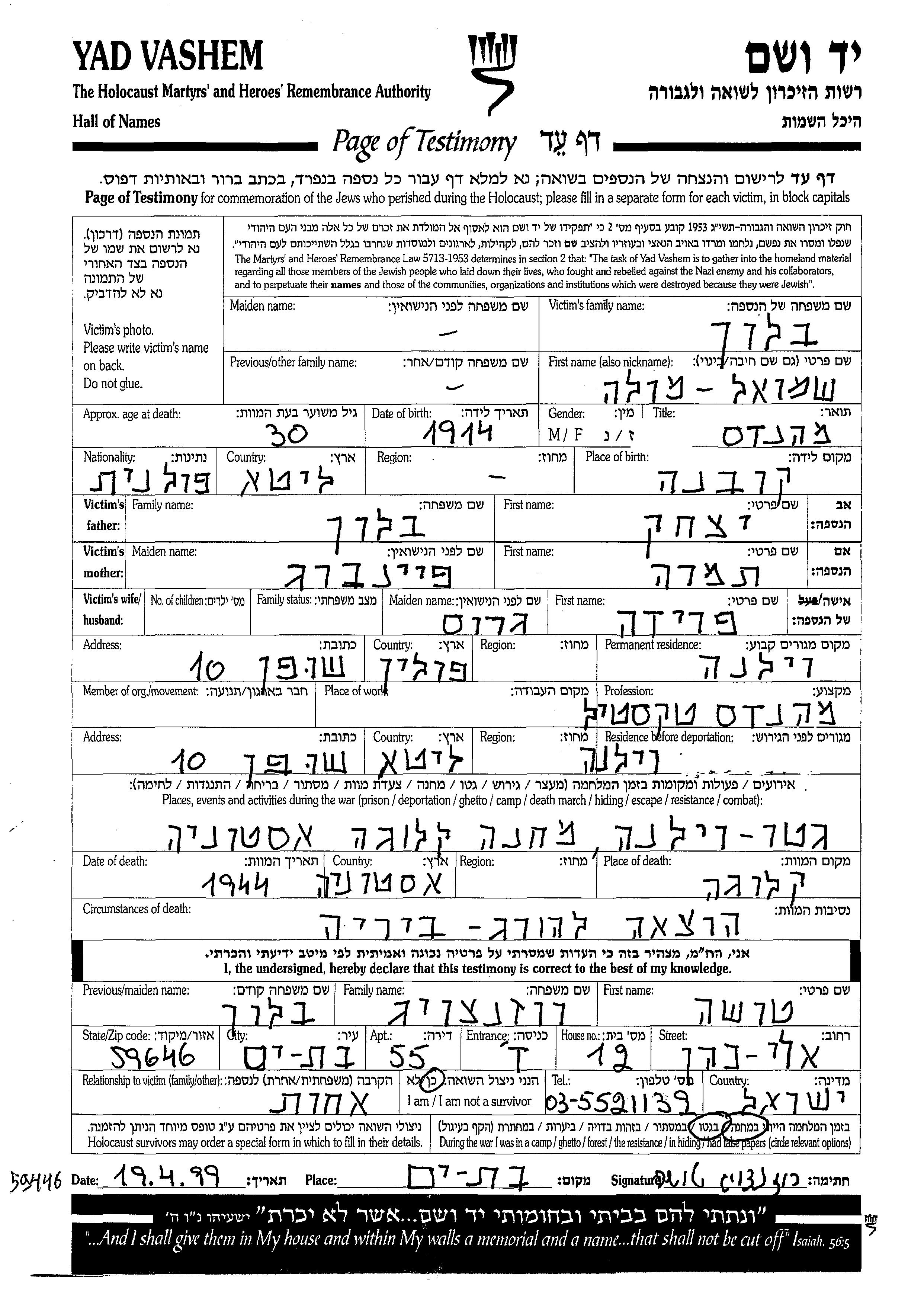 Shmuel wurde in der Schoah ermordet. Todesort: Klooga, Estland im Jahr 1944.