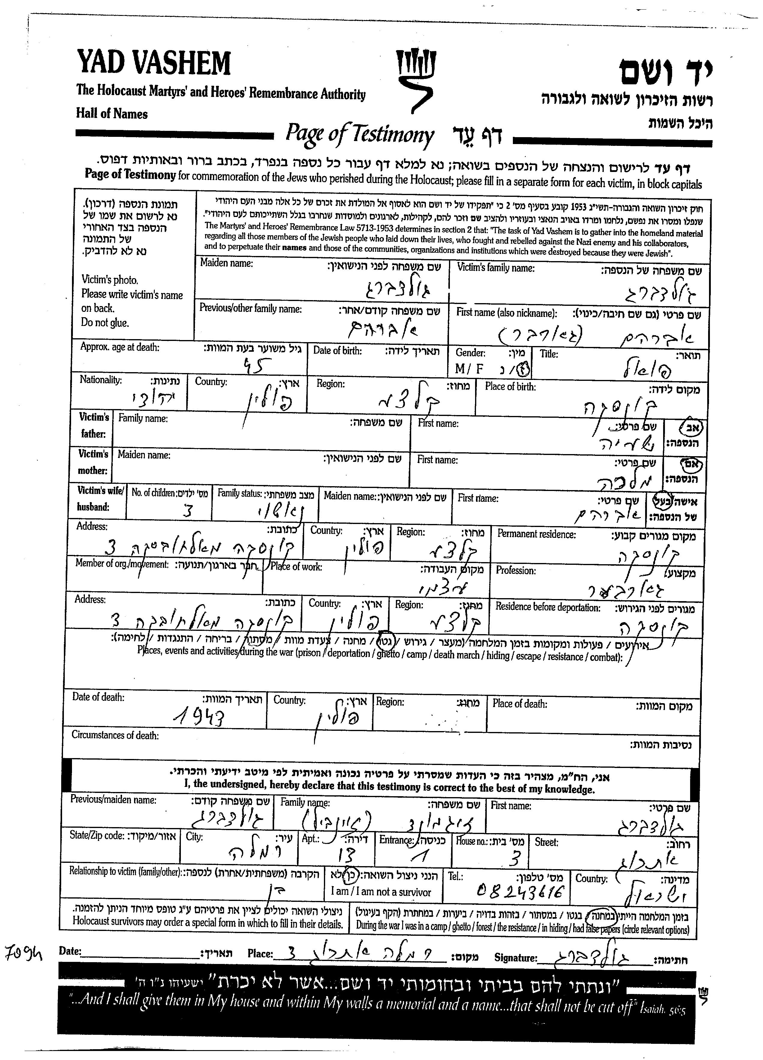 Avraham wurde in der Schoah ermordet. Todesort: Polen im Jahr 1943.