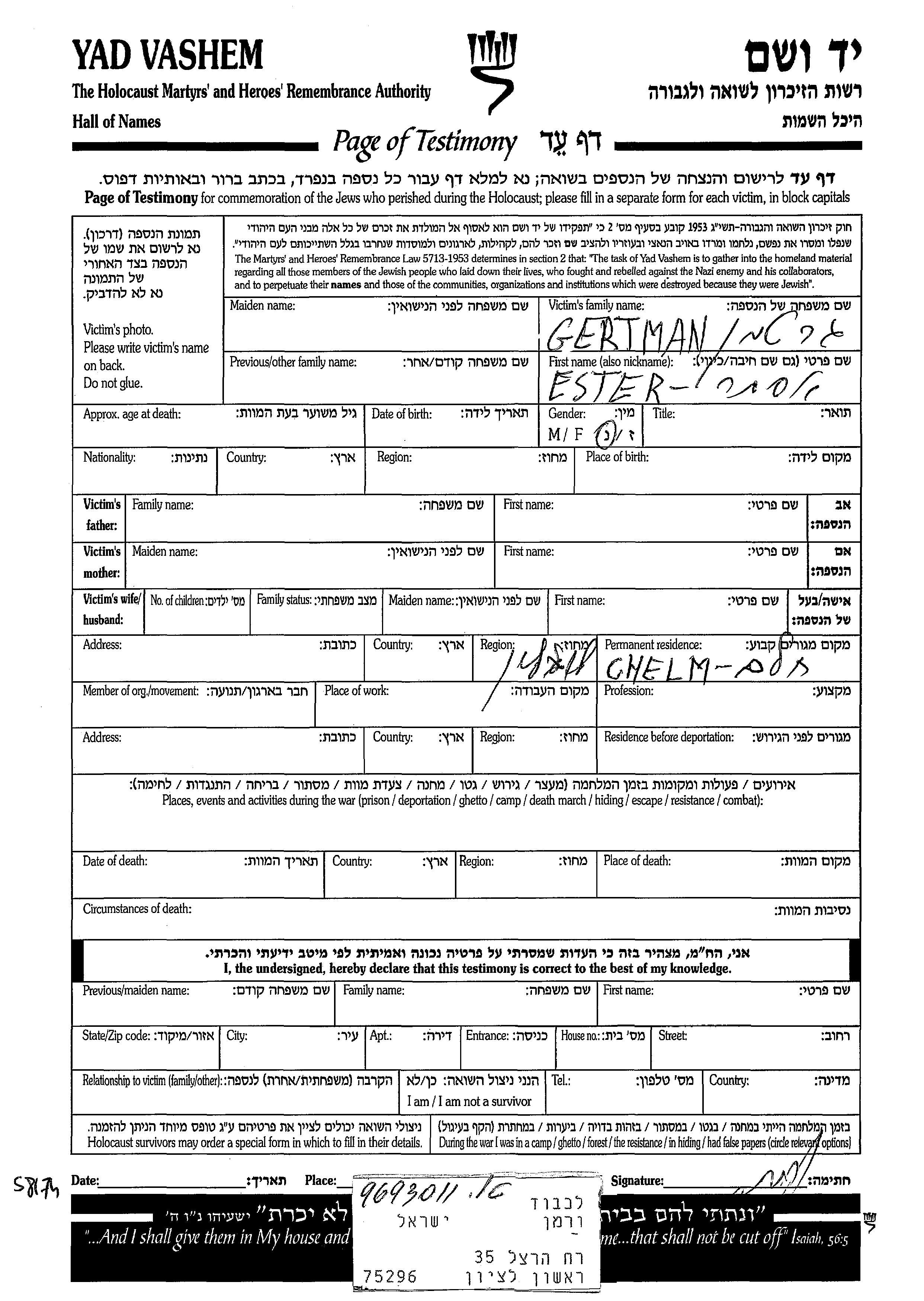 Suche nach einem Todesjahr im Zeitraum der Holocaust: 1933 bis 1945. Bitte wählen Sie 'Exakt' im Auswahlmenü, um nur nach einem einzelnen Jahr zu suchen, alternativ können Sie die flexibleren Optionen '+/- 2 Jahre' oder '+/- 5 Jahre' wählen.