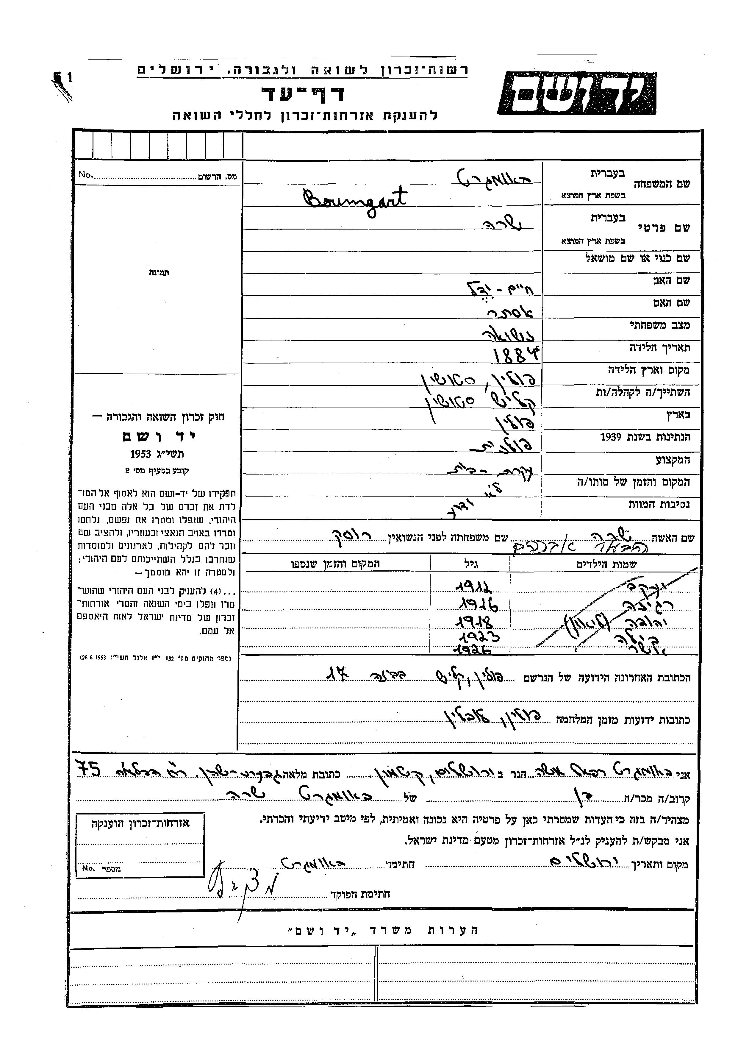 Yad Vashem - Gedenkblätter Sammlung