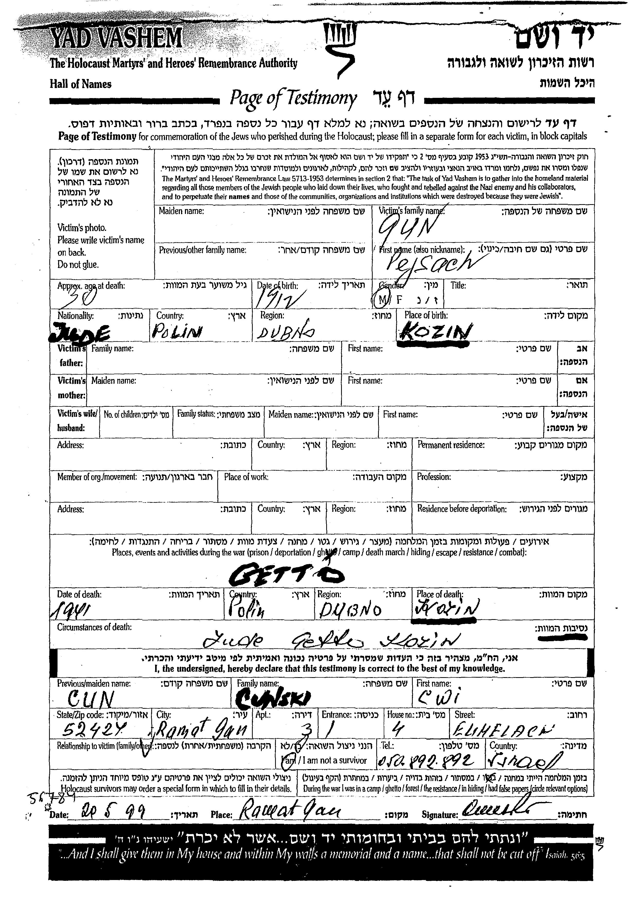 Pejsach wurde in der Schoah ermordet. Todesort: Kozin, Polen im Jahr 1941.