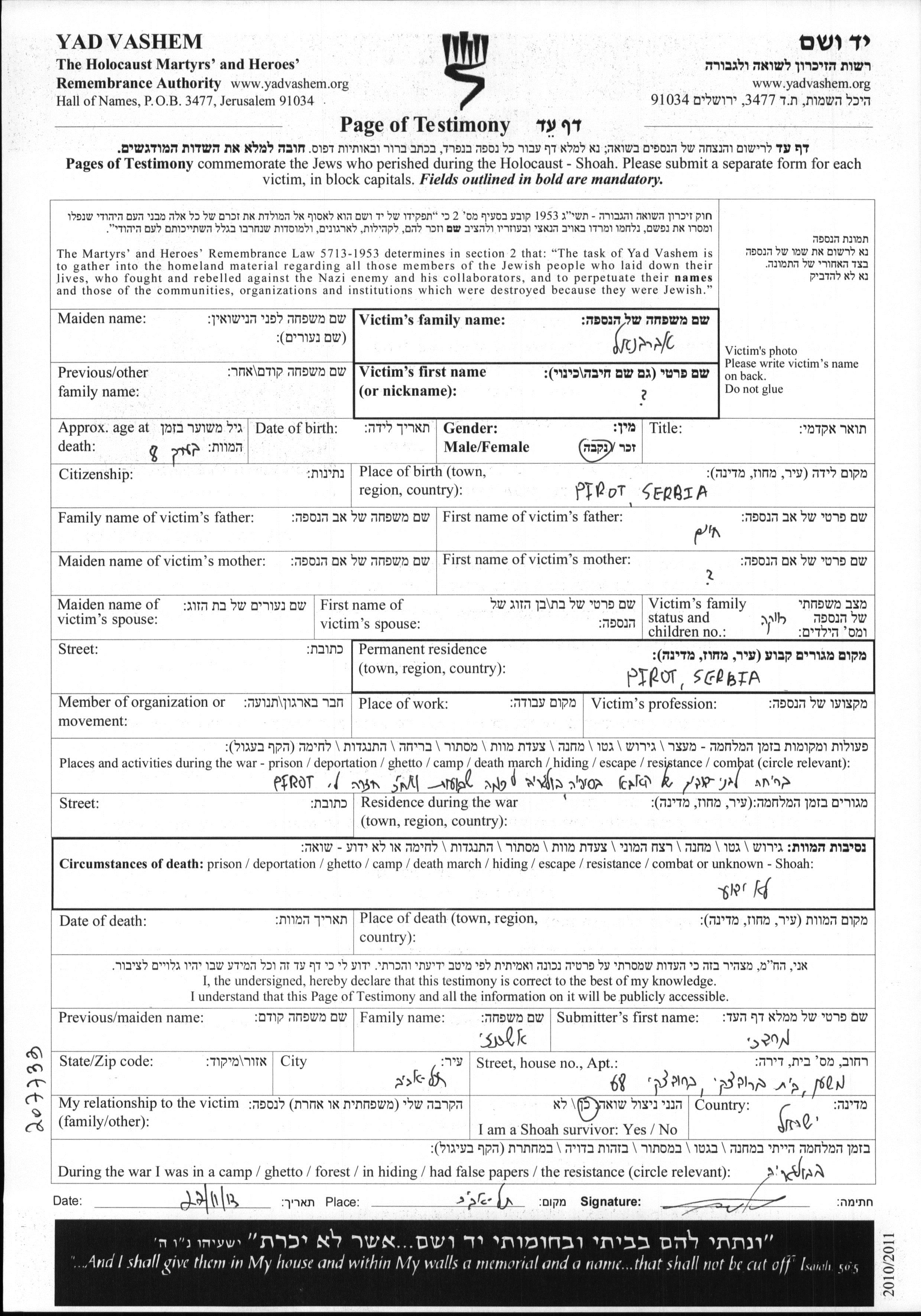 Vorname unbekannt Abarbanel wurde in Pirot, Jugoslawien geboren. Sie war Kind. Vor dem Zweiten Weltkrieg lebte sie in Pirot, Jugoslawien. Während des Krieges war sie in Pirot, Jugoslawien.