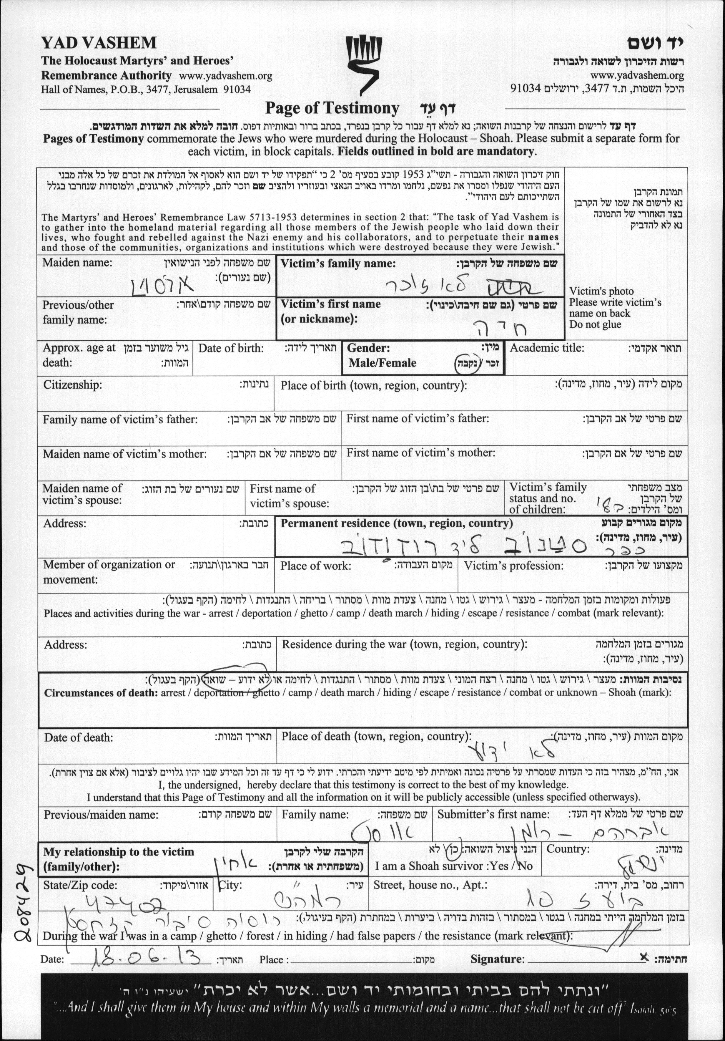 Chaia Name unbekannt, geb. Ost. Sie war Verheiratet. Vor dem Zweiten Weltkrieg lebte sie in Stany, Polen.
