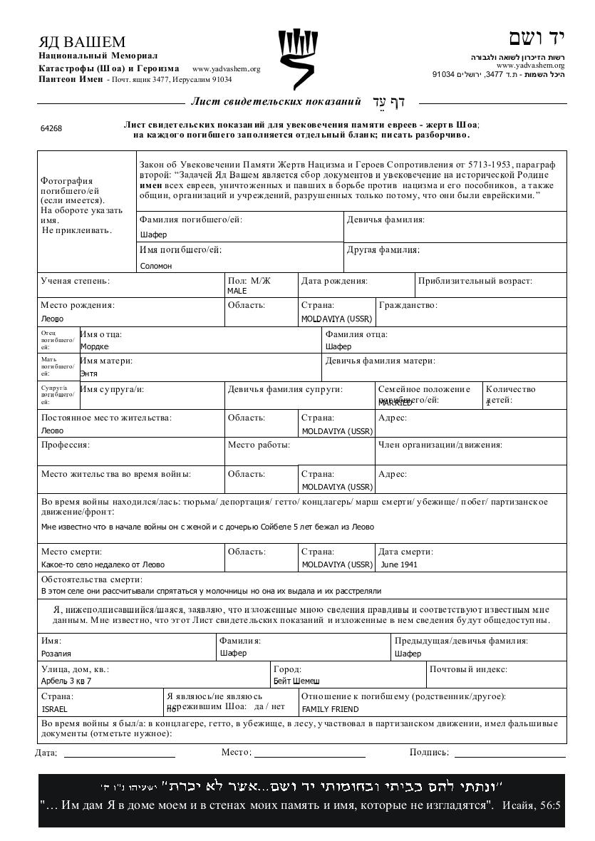 Juden wurden in der Schoah auf verschiedenste Weisen ermordet, unter anderem: Vergasen, Erschiessen, lebendig verbrannt werden, lebendig begraben werden, Tod durch Erschöpfung durch Zwangsarbeit, Epidemien, mangels jeder hygienischer Bedingung oder dem Fehlen medizinischer Versorgung. Manche Juden nahmen sich das Leben, um der Festnahme und weiterer Verfolgung zu entgehen oder ihr hoffnungsloses, nicht nachlassendes Leiden zu beenden.