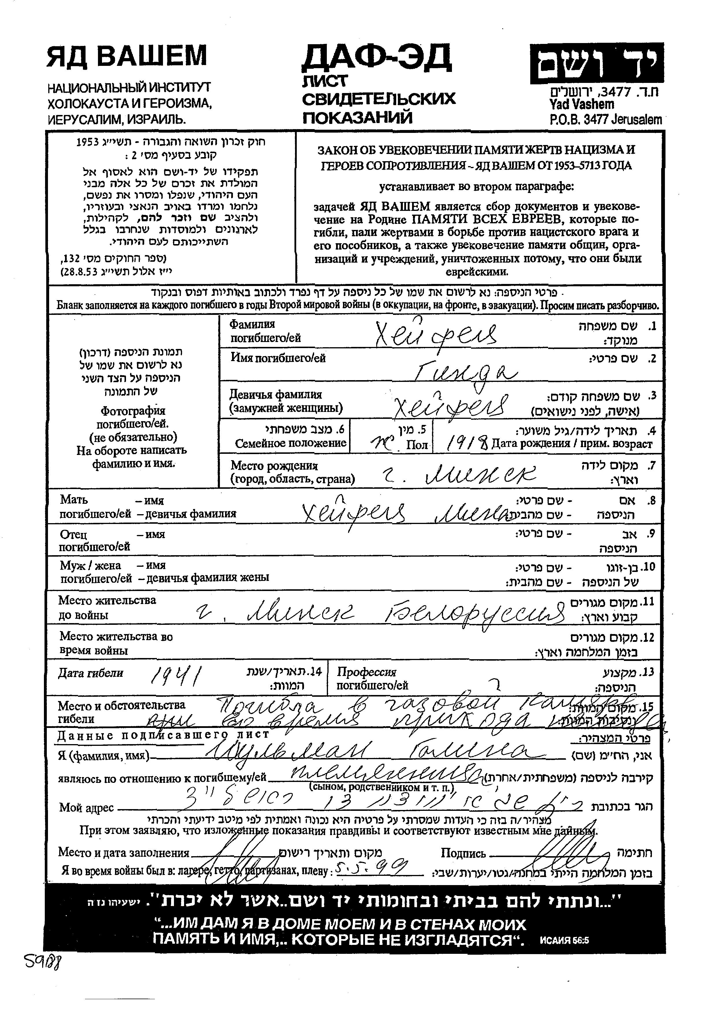 Ginda Kheifetz wurde im Jahr 1918 in Minsk, Weißrussland (UdSSR) geboren. Sie war die Tochter von Mina. Vor dem Zweiten Weltkrieg lebte sie in Minsk, Weißrussland (UdSSR).