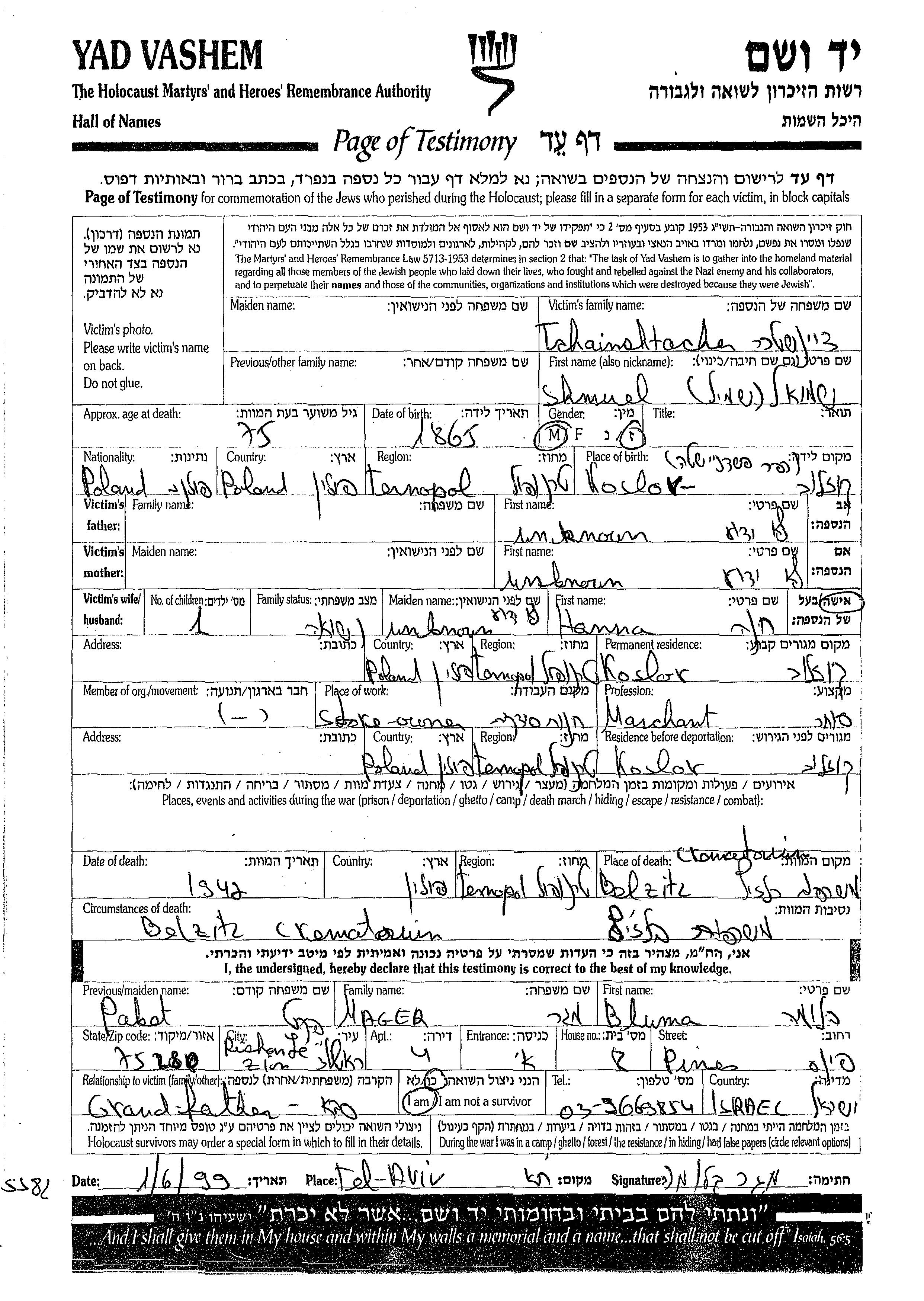 Shmuel wurde in der Schoah ermordet. Todesort: Belzec, Polen im Jahr 1942.