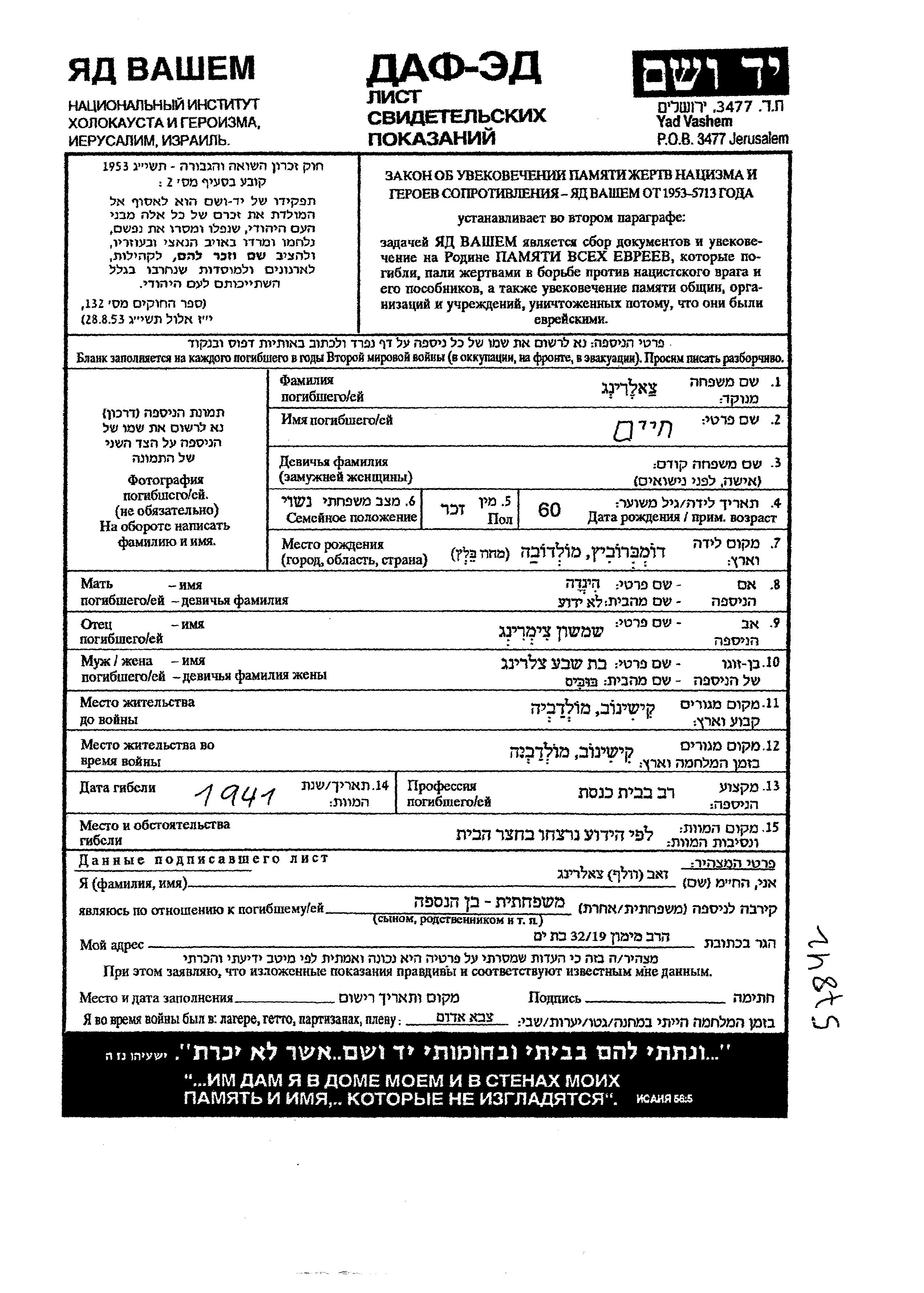 Khaim wurde in der Schoah ermordet. Todesort: Kishinev, Rumänien im Jahr 1941.