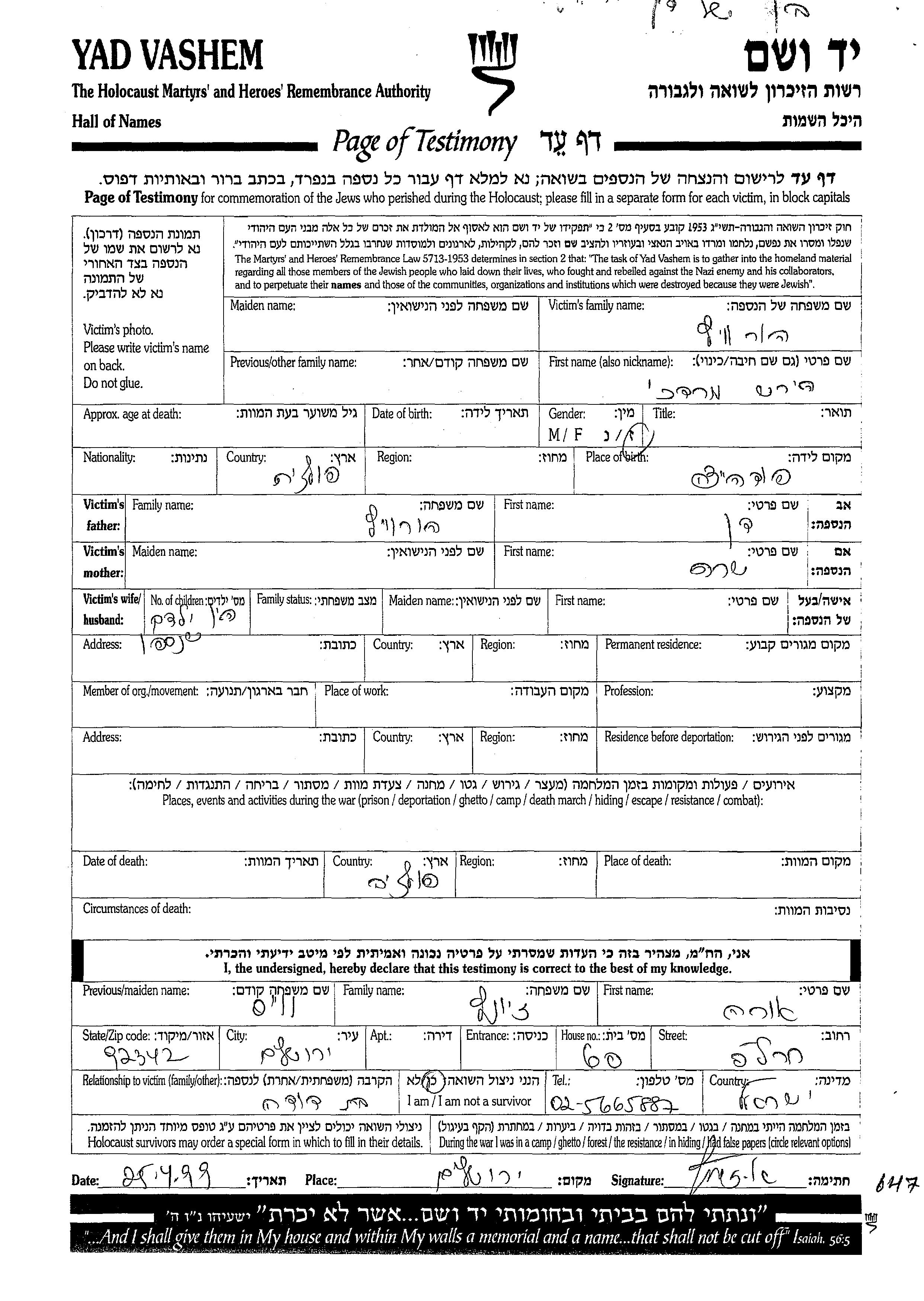 Yad Vashem - Gedenkblätter Sammlung
