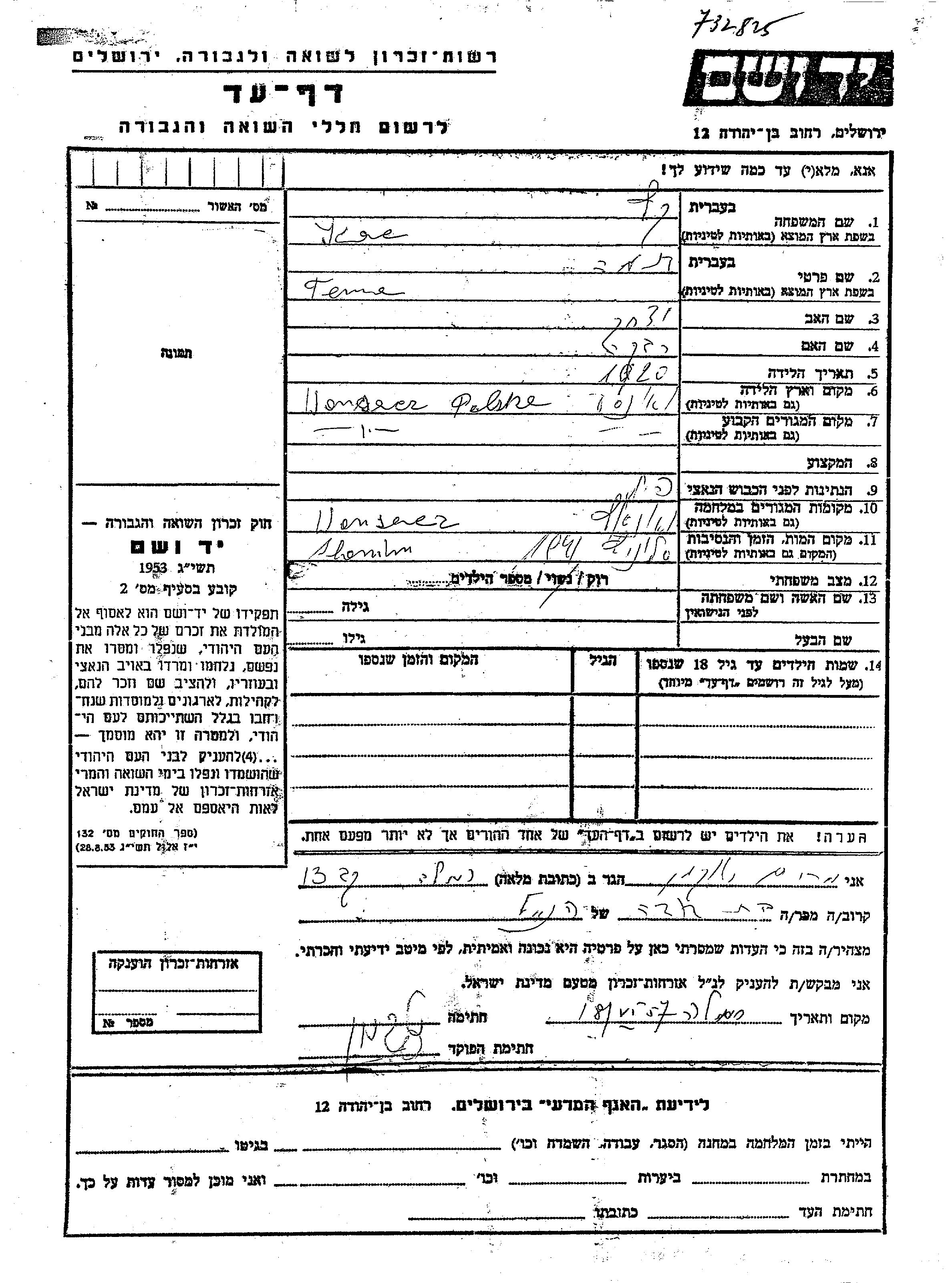 Teme wurde in der Schoah ermordet. Todesort: Slonim, Polen im Jahr 1941.