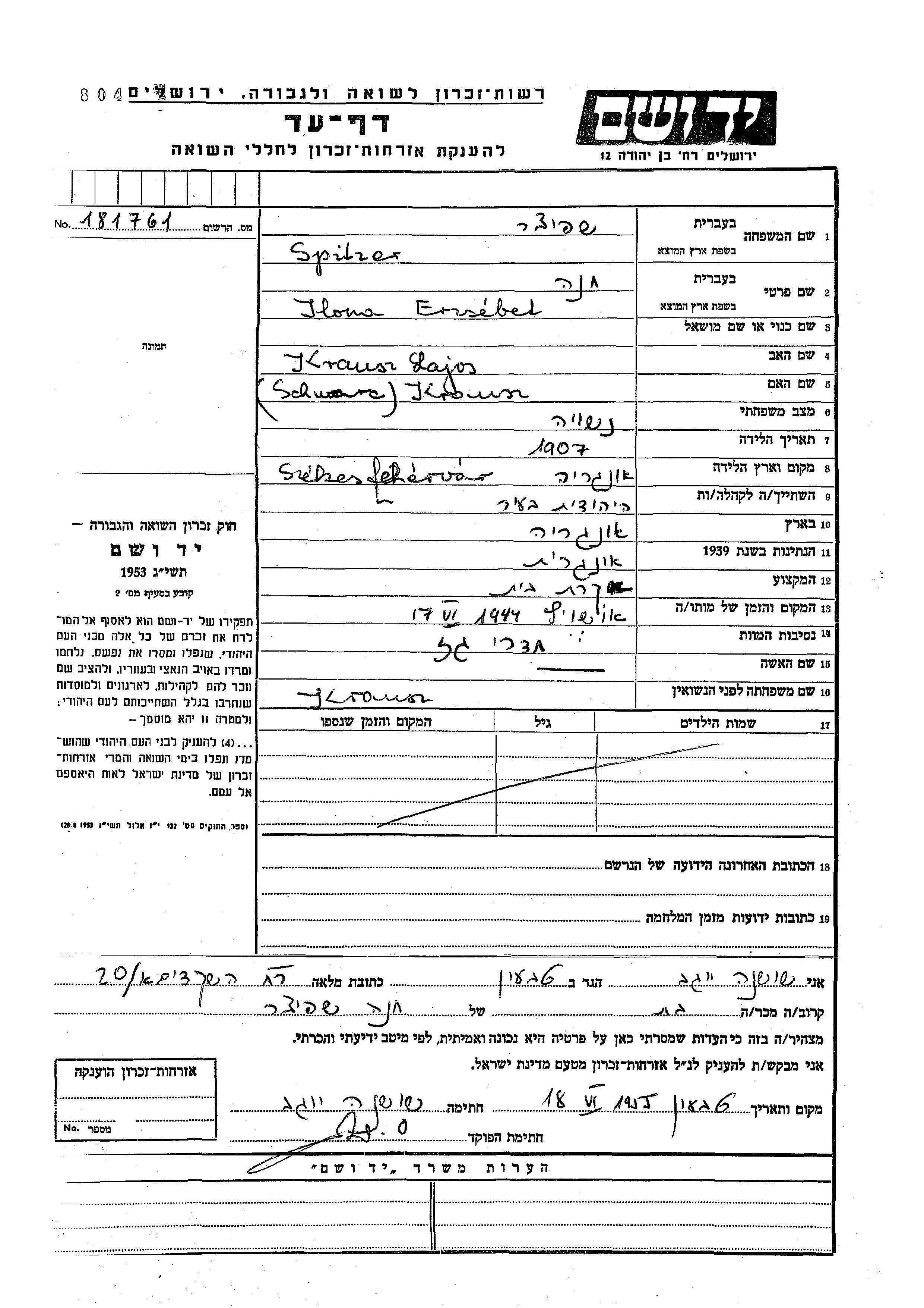 Ilona Erzsebet Khana Spitzer, geb. Krausz wurde im Jahr 1907 in Szekesfehervar, Ungarn geboren. Sie war die Tochter von Lajos. Sie war Hausfrau und Verheiratet.