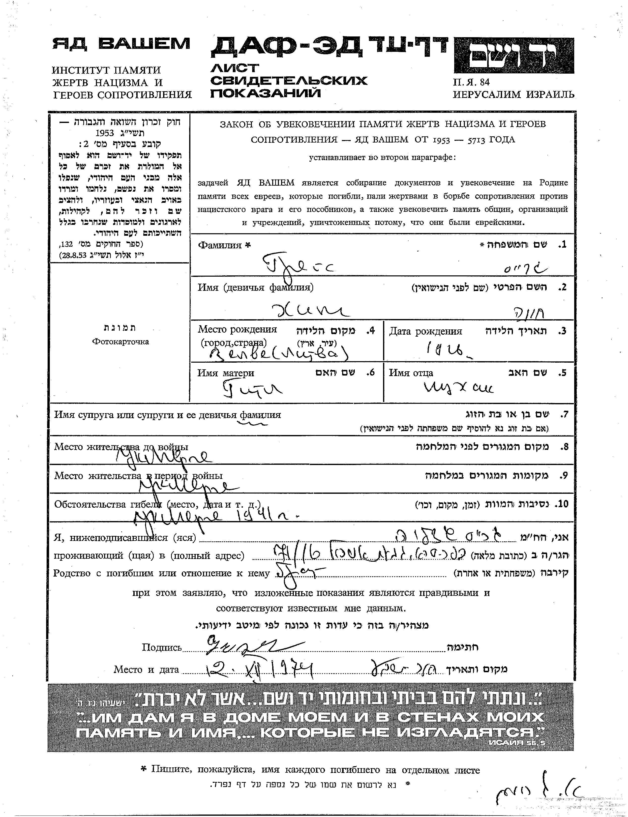 Khine wurde in der Schoah ermordet. Todesort: Ukmerge, Litauen im Jahr 1941.