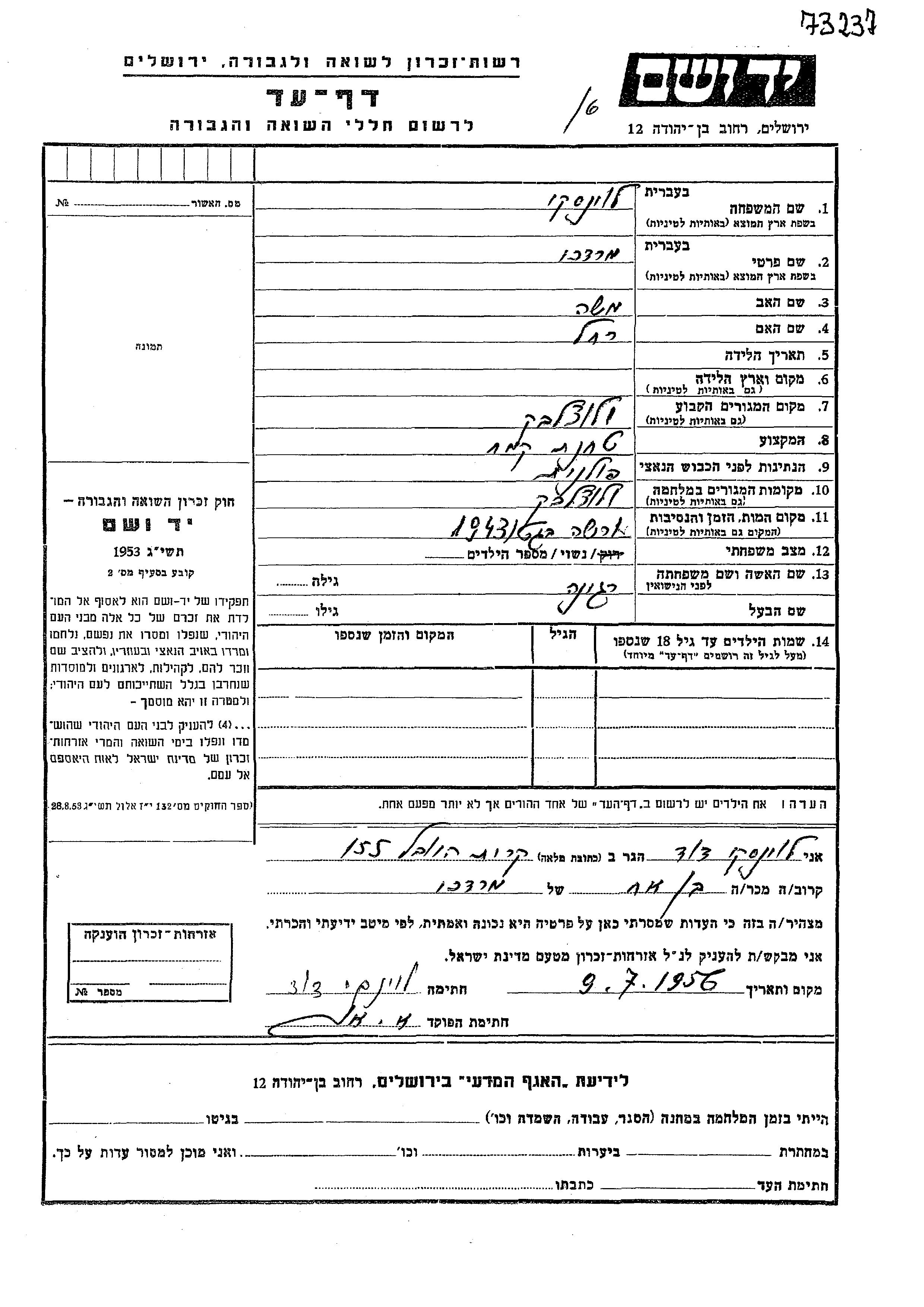Mordekhai Levinski wurde Er war der Sohn von Moshe und Rakhel. Er war mit Regina Verheiratet. Vor dem Zweiten Weltkrieg lebte er in Wloclawek, Polen. Während des Krieges war er in Wloclawek, Polen.