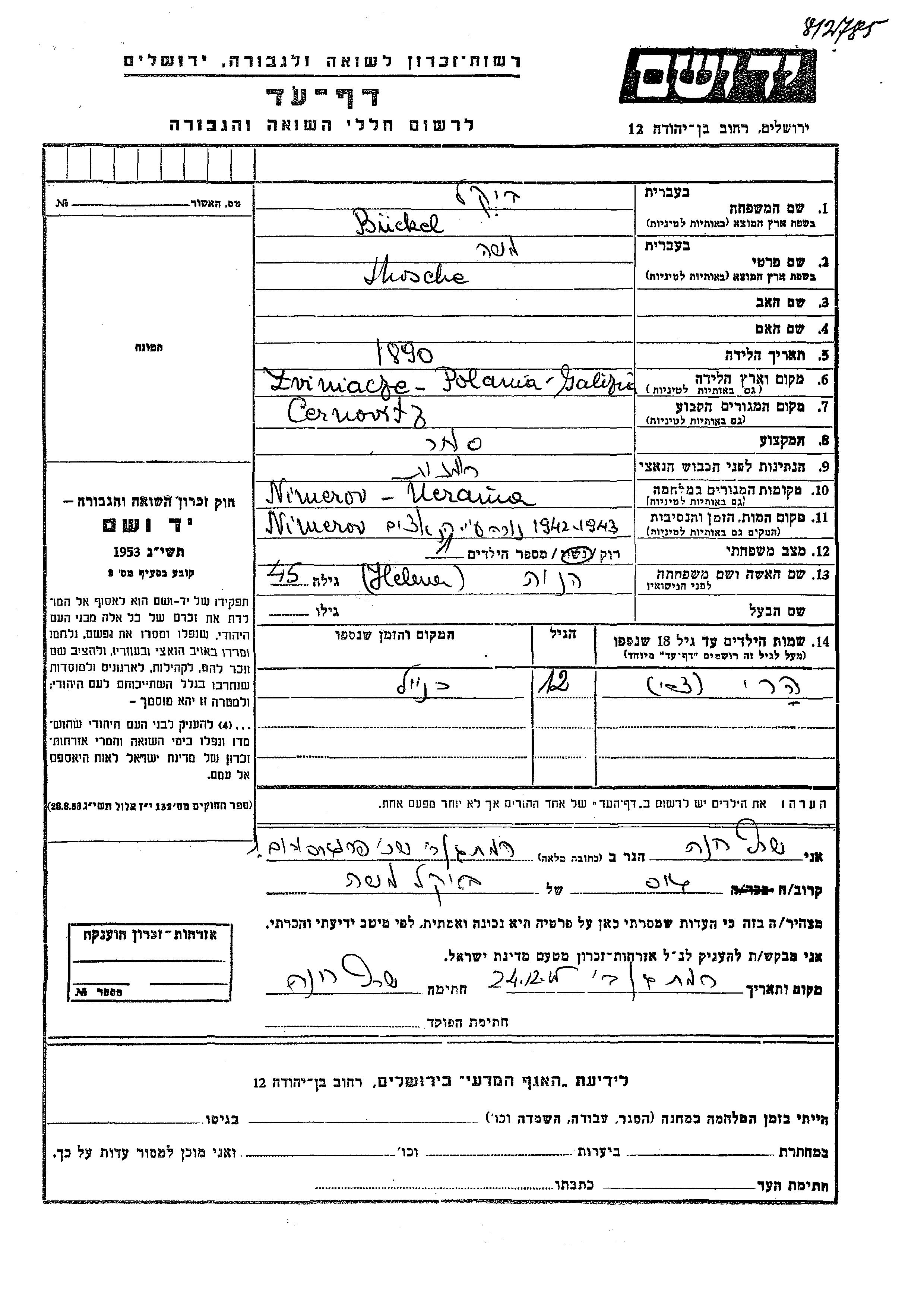 Mosche wurde in der Schoah ermordet. Todesort: Nemirov, Ukraine (UdSSR) im Jahr 1942.