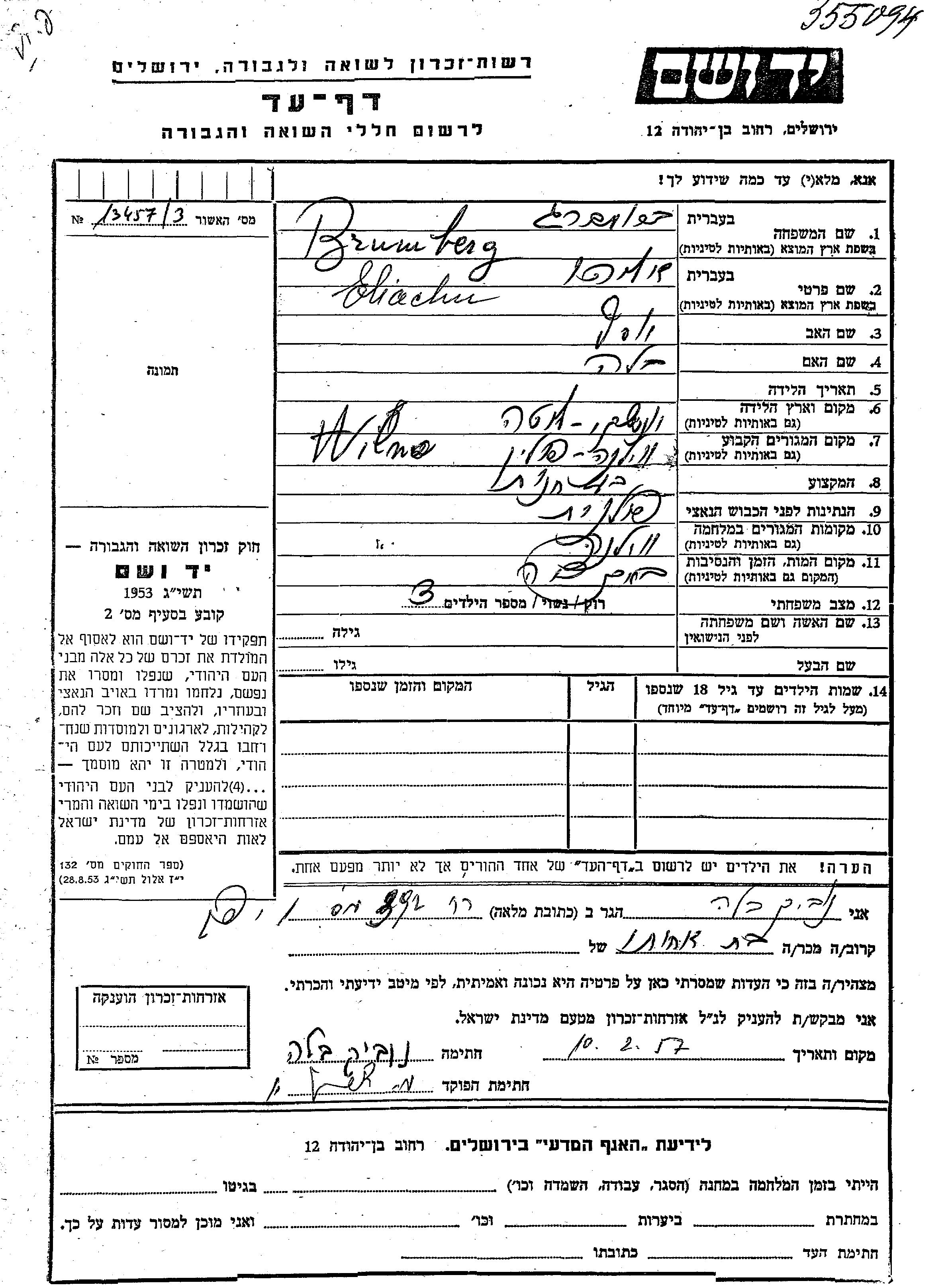 Eliachu wurde in der Schoah ermordet. Todesort: Wilna, Polen.