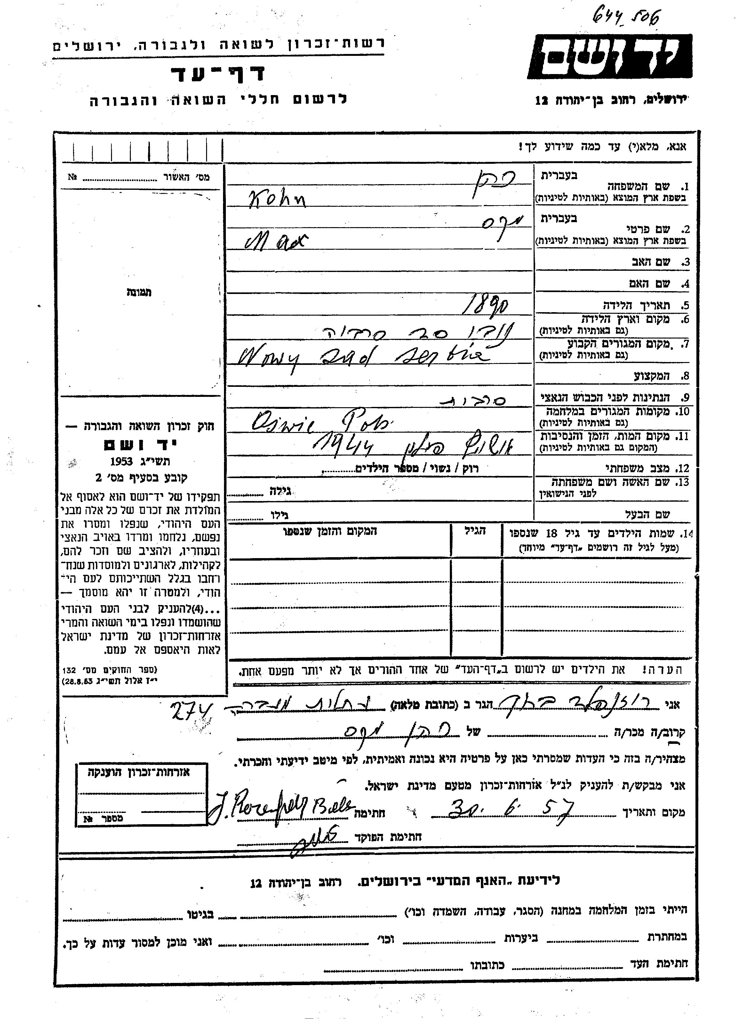 Max Kohn wurde im Jahr 1890 in Novy Sad, Jugoslawien geboren. Vor dem Zweiten Weltkrieg lebte er in Novy Sad, Jugoslawien. Während des Krieges war er in Auschwitz, Polen.